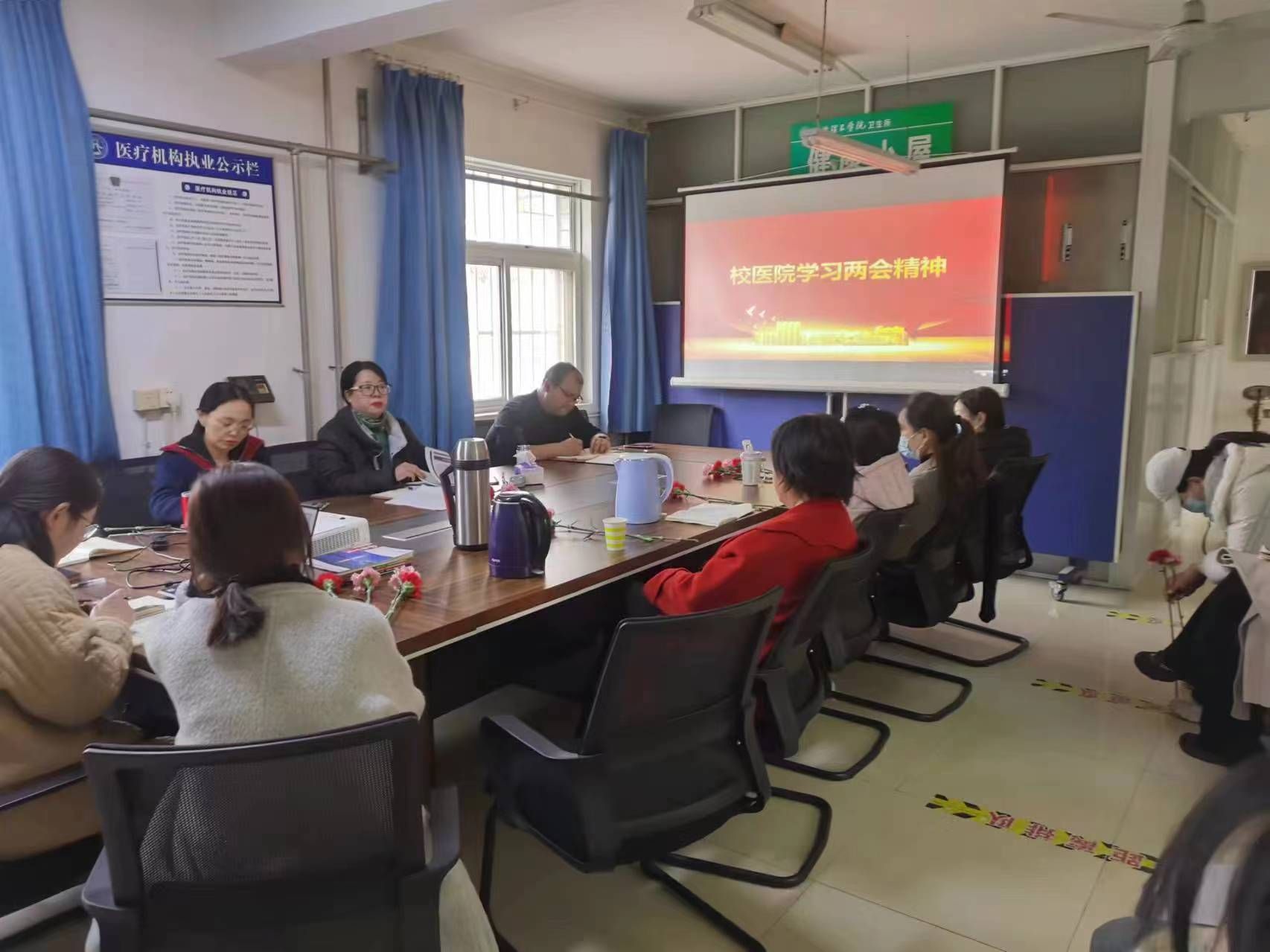 2024年3月7日,校医院开展了两会精神的学习会议。会议由校医院直属党支部书记王进平主持。