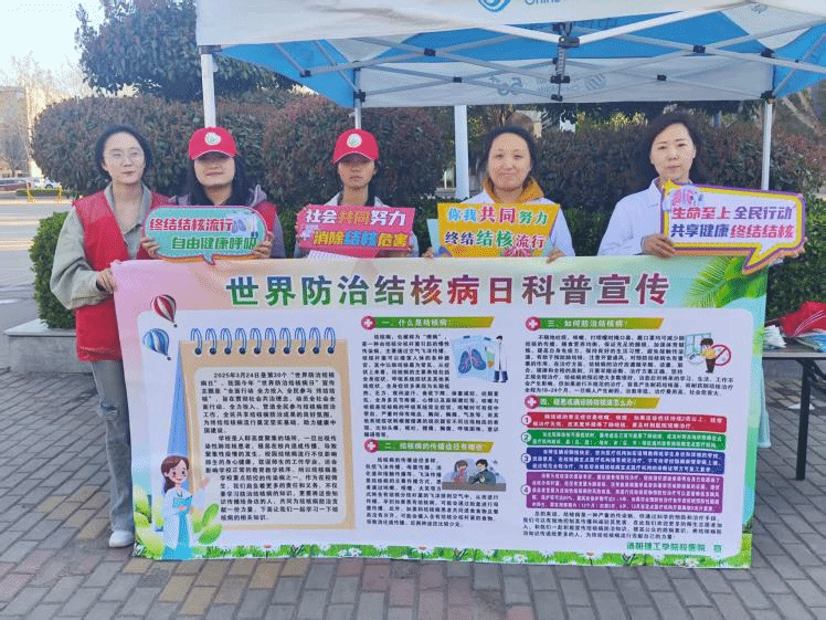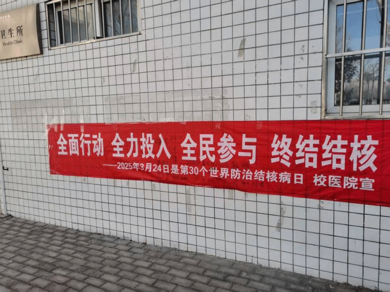 校医院还在宣传栏张贴了世界结核病日科普海报,在醒目位置悬挂了横幅,医务人员为前来看病的学生发放了宣传彩页和纪念品。