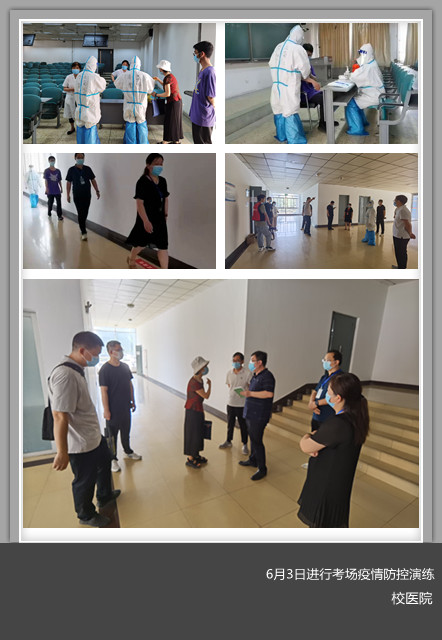 的要求,依据《方案》,结合考场实际,6月3日、6月5日,校医院与教务处和学生处一起,进行了三次演练。