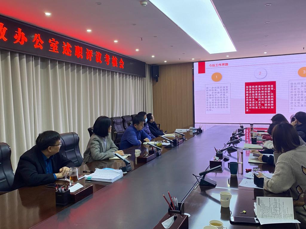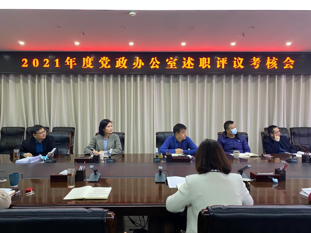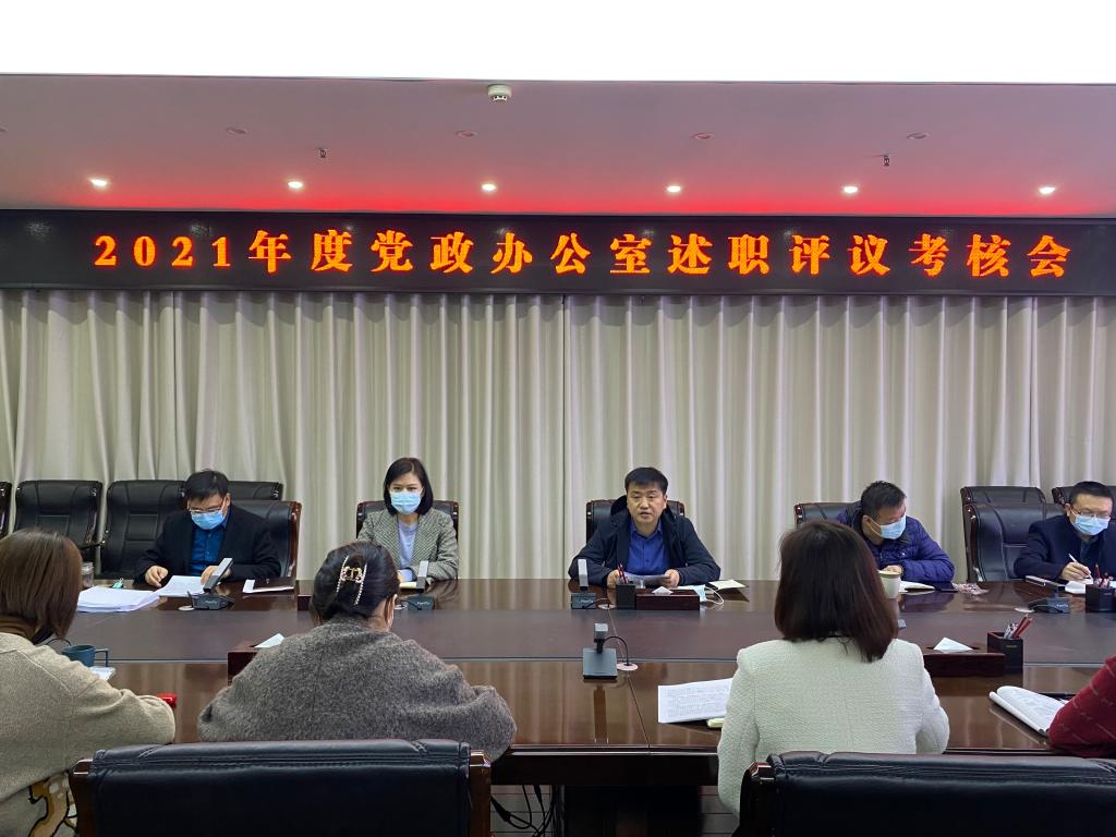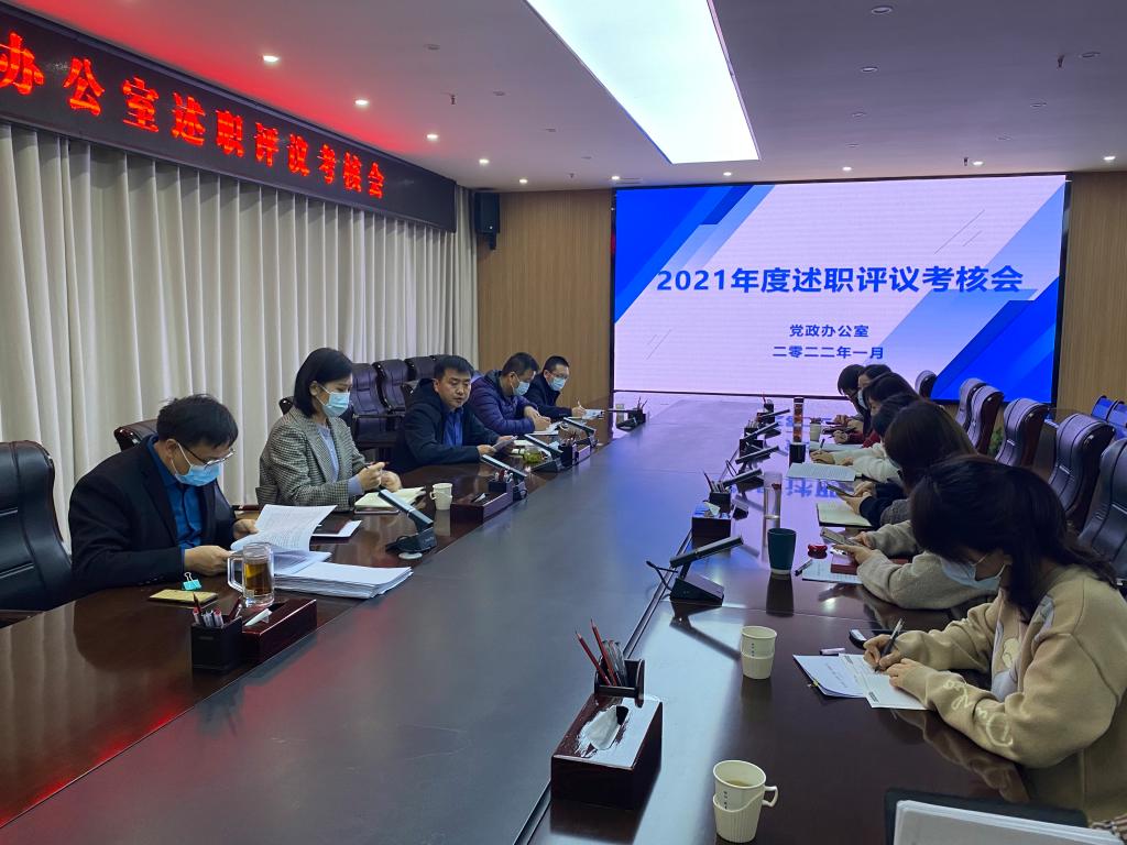 为进一步做好2021年度总结和考核工作,增强部门人员责任意识、效能意识、大局意识、服务意识,增进相互交流和沟通,不断提高业务素质和工作能力,1月6日上午,党政办公室进行各科室年度工作述职测评会,会议由徐光秀同志主持,党政办公室全体员工参加。