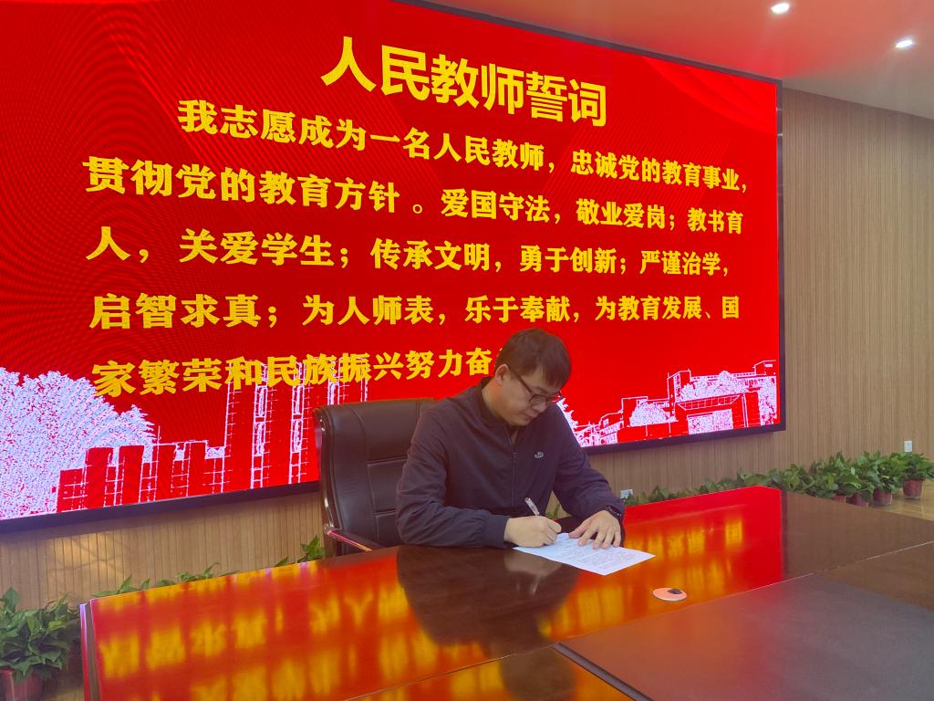 支部书记徐光秀结合党史学习教育对支部全体党员提出要求,他强调,一是要持续开展党史学习教育,不断增强理想信念和党性修养。二是把党史学习教育落实落地,做到悟思想更深化,办实事更细化,宣传教育更强化。三是把党史学习教育走深走实,营造班子成员带头学党史,支部党员人人学的氛围。最后在徐光秀同志的带领下,全体党员举起右手重温教师誓词,并签订了《美高梅娱乐场 教师行为规范承诺书》。