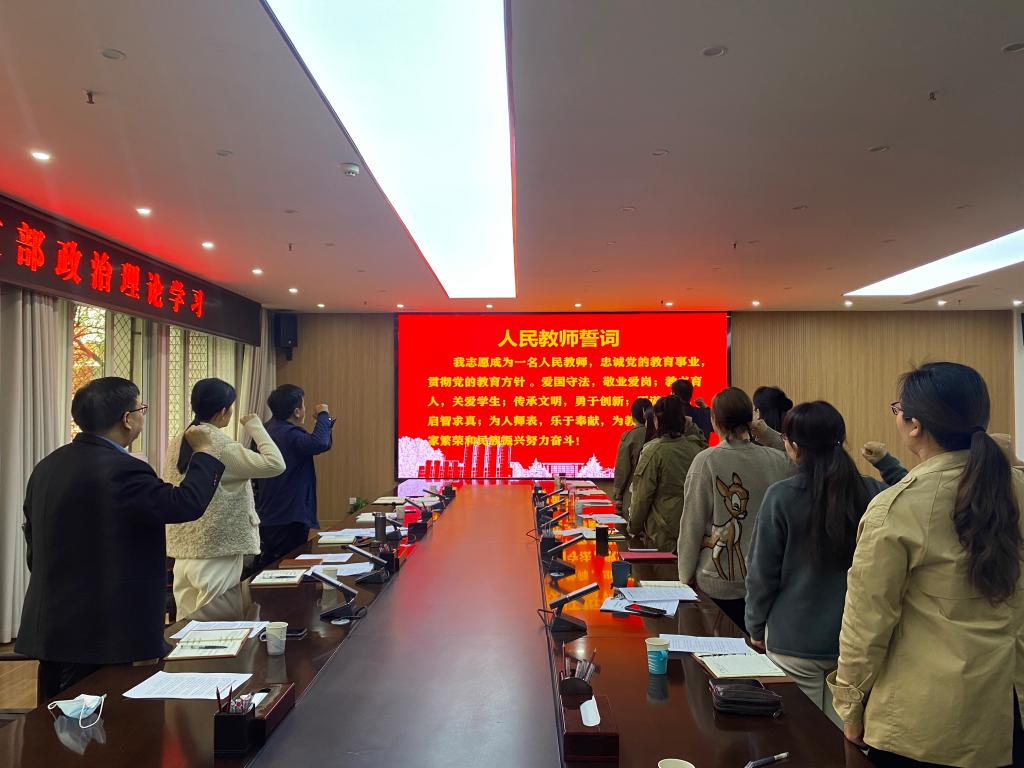为深入推进支部党史学习教育走深走实,在全校上下共庆建校65周年之际,10月22日下午,机关党委第一支部在王城校区行政楼116会议室组织开展了以“喜迎65周年校庆,重温人民教师誓词”为主题的党日活动。