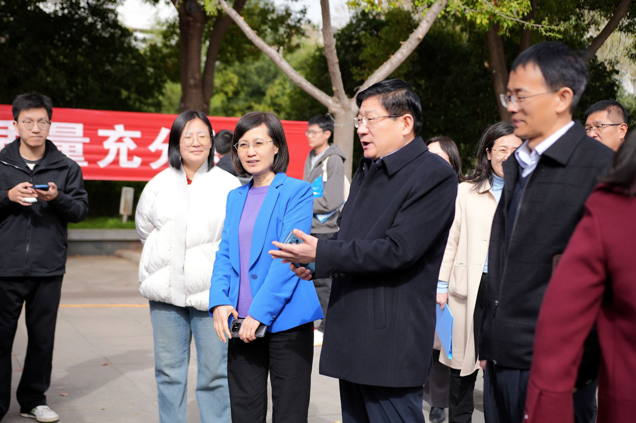 党委书记卢志文、校长丁梧秀、副校长上官林建巡视招聘现场,了解企业情况并与企业代表、参会毕业生亲切交谈。