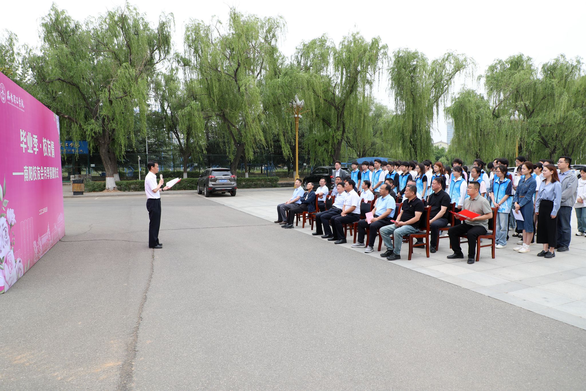 在王城校区举办南阳校友会月季捐赠仪式,党委书记卢志文,副校长上官林建,美高梅娱乐场