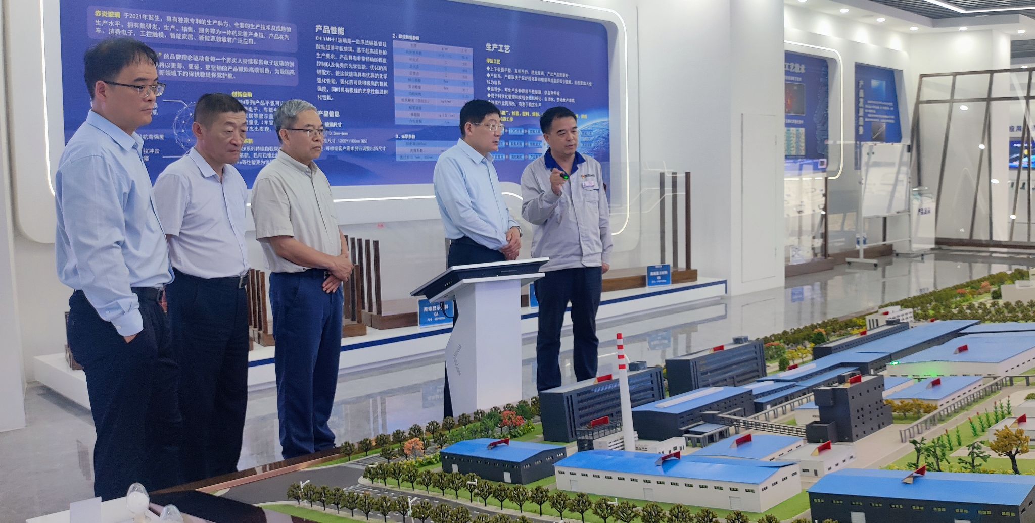 卢志文一行实地考察了三家企业的生产线、实验室、前沿技术展示馆、中央控制大厅、在建项目以及园区内的河南精密玻璃产业研究院。