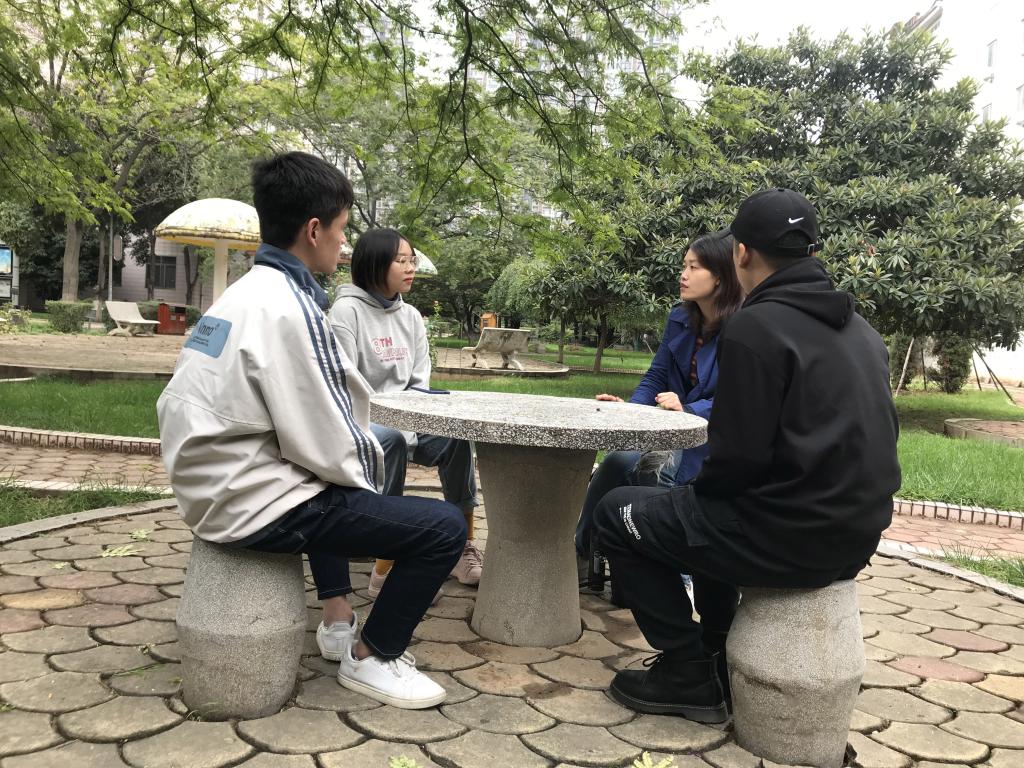 教工第二党支部韦晓坚副教授,与尖峰影视社团负责人袁超凡、夏梦娟等同学,讨论11月底的活动方案,围绕MOOC短视频拍摄技巧,开展活动。韦老师还召集手绘彩泡社团骨干,讨论下一步将在九都校区学生食堂二楼文创园进行彩绘活动,教工二支部将根据需要为社团活动提供专业支持。