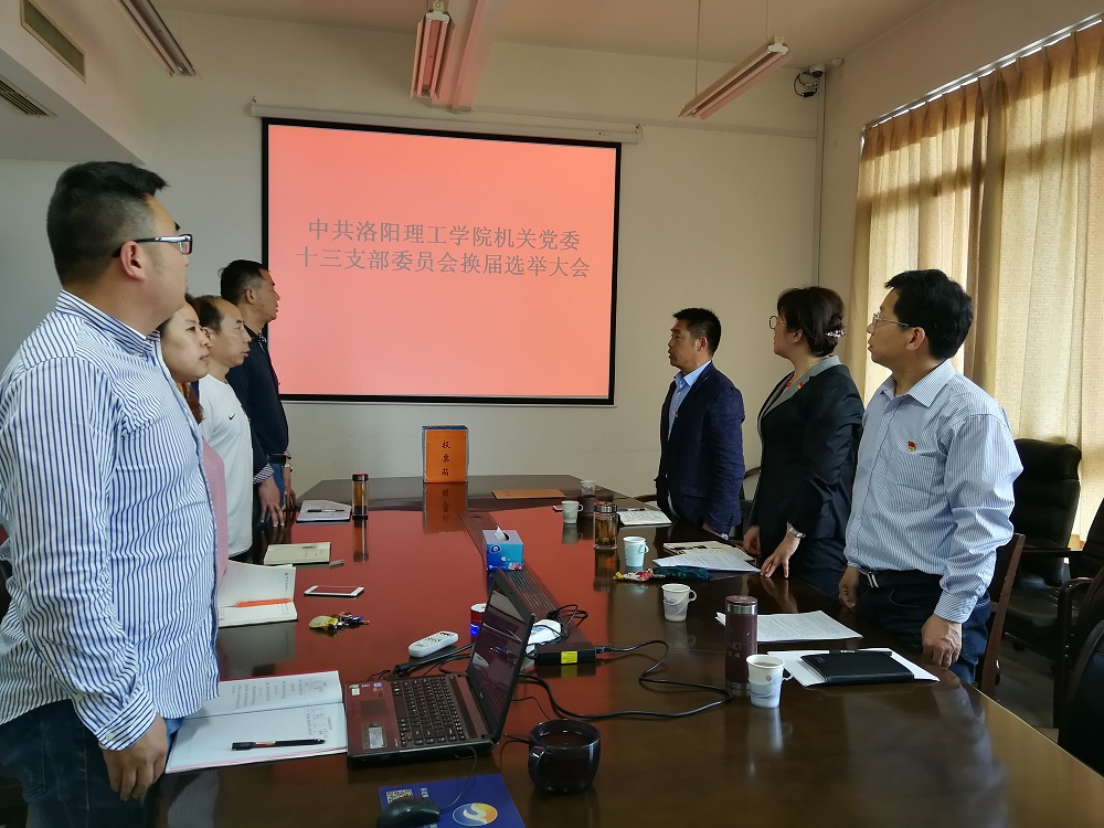 2018年4月19日下午,伴随着庄严的国歌声,机关党委第十三支部隆重召开了第四届支部委员换届选举大会。严格按照《关于做好基层党支部换届工作的通知》(党发〔2018〕11号)文件要求和选举程序,会议最终选出了以汪丽萍同志为机关党委第十三支部书记、刘孟贺同志为组织委员、仲昭麟同志为宣传兼纪检委员的新一届支委。