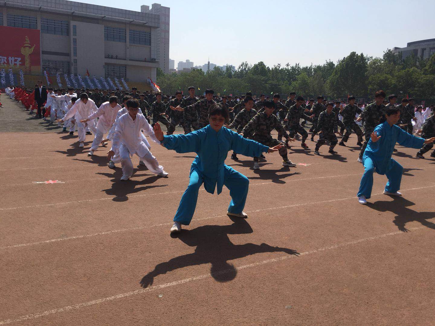 现场近4000名师生共同进行了太极拳表演,近万名师生同声高唱《我和我的祖国》,向祖国七十华诞送上了洛理师生最美好的祝福。