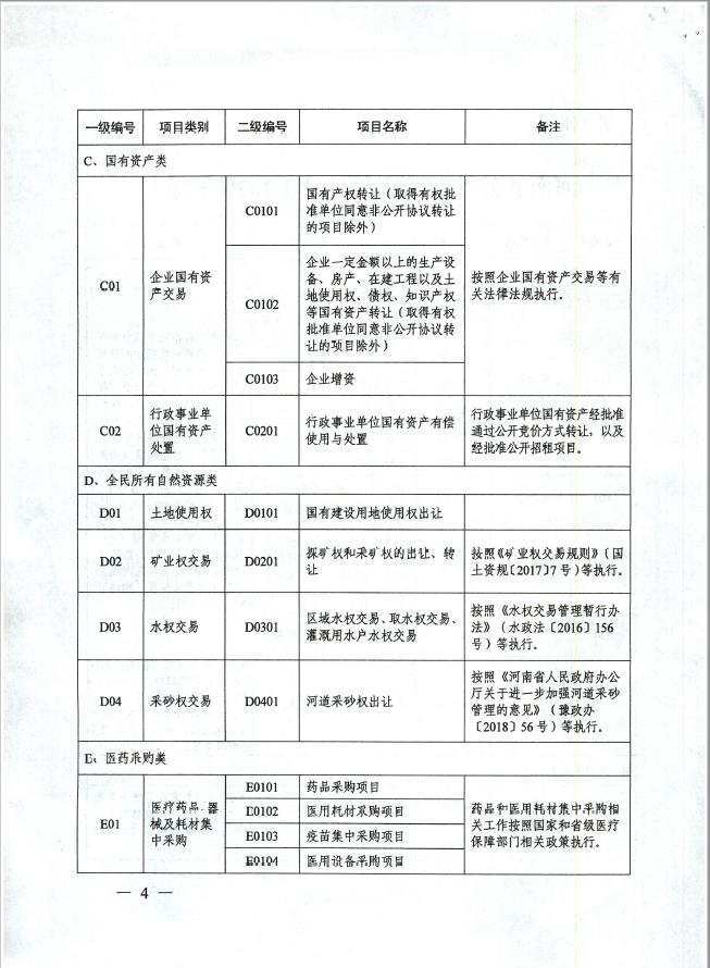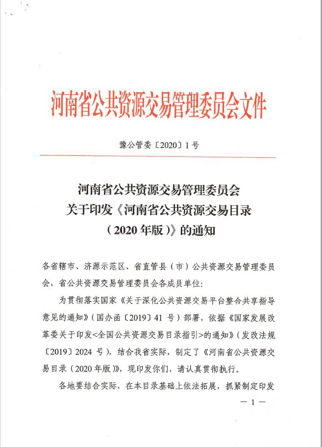 【政策法规】河南省公共资源交易管理委员会关于印发《河南省公共资源交易目录(2020版)》的通知