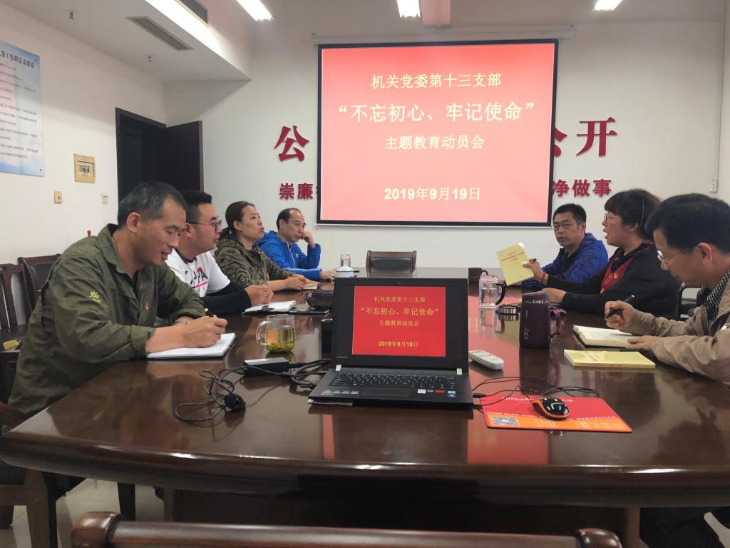 9月19日下午,机关党委第十三支部在王城校区办公楼511会议室召开“不忘初心、牢记使命”主题教育动员会。会议由支部书记汪丽萍主持,支部全体党员参加。