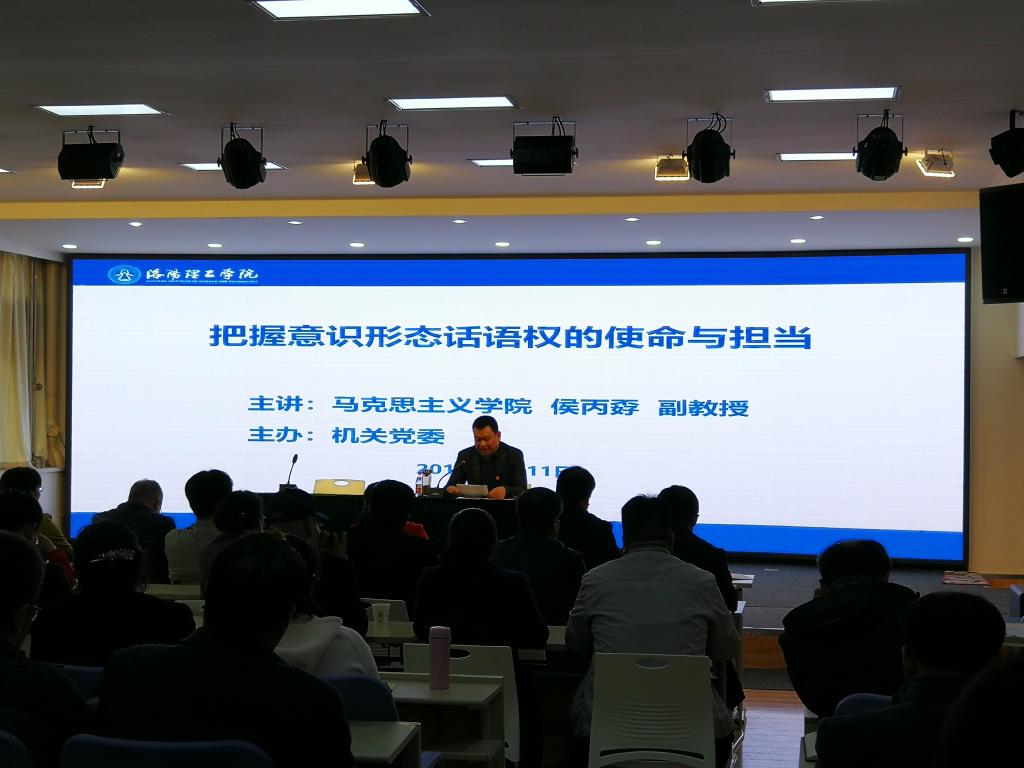 副院长侯丙孬受邀作了《把握意识形态话语权的使命与担当》的报告,他从“意识形态工作是党的一项极端重要的工作”“坚持马克思主义的指导地位”“高校培养接班人的使命”“高校进行意识形态的担当”四个方面进行了深入浅出的讲解,帮助和指导同志们进一步加深对意识形态工作重大意义的认识和把握,进一步增强做好意识形态工作的责任感和紧迫感。