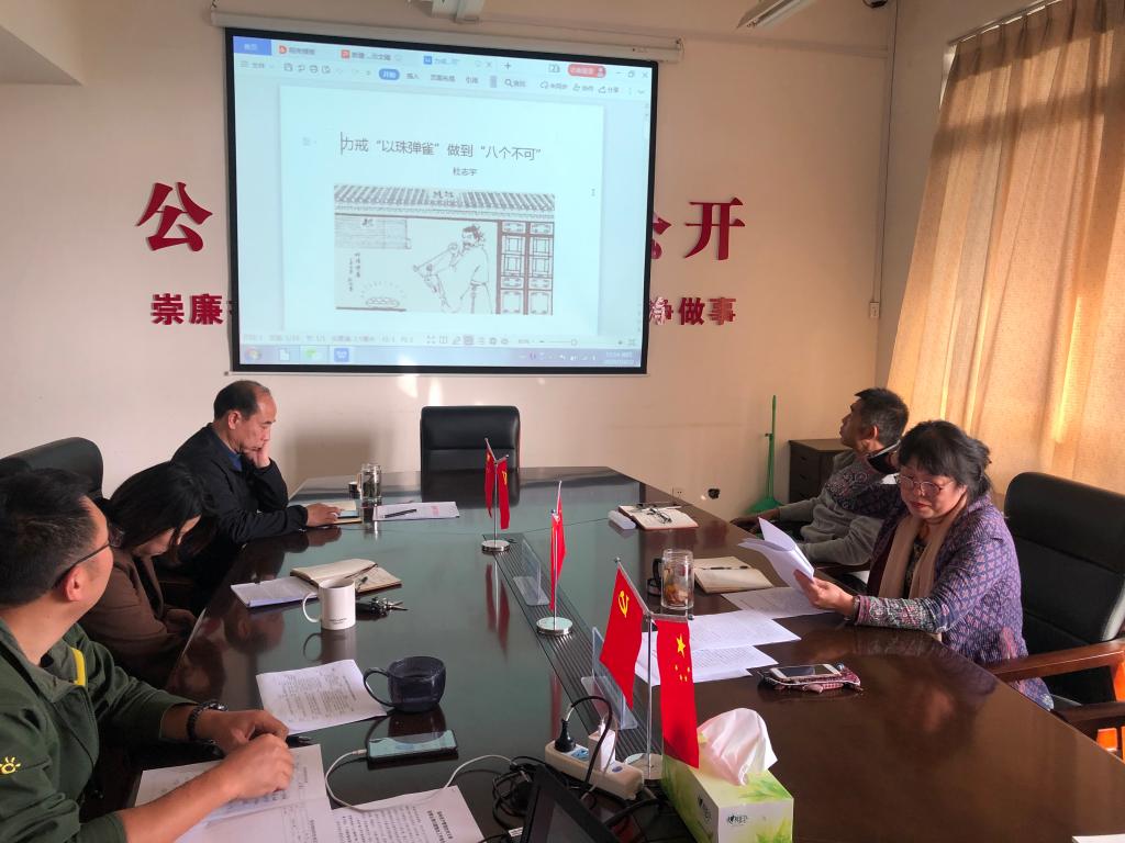 刘建辉同志带领大家共同学习了《力戒“以珠弹雀”做到“八个不可”》,从风险和严惩“长期并存”、牢记“初心使命”、掌握“纪律规矩”、坚守“四条底线”、增强“四个能力”、克服“五种心理”、严防“八种人”、建设“良好家风”等八个方面教育党员干部职工务必保持清醒,防止贪小失大,避免“捐身易富贵,明珠弹飞鸟”,增强自我约束的定力。