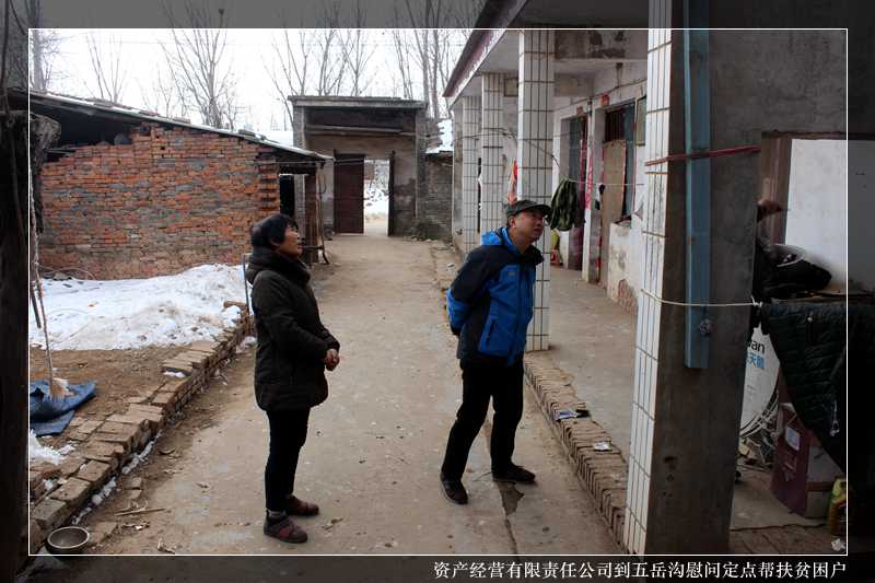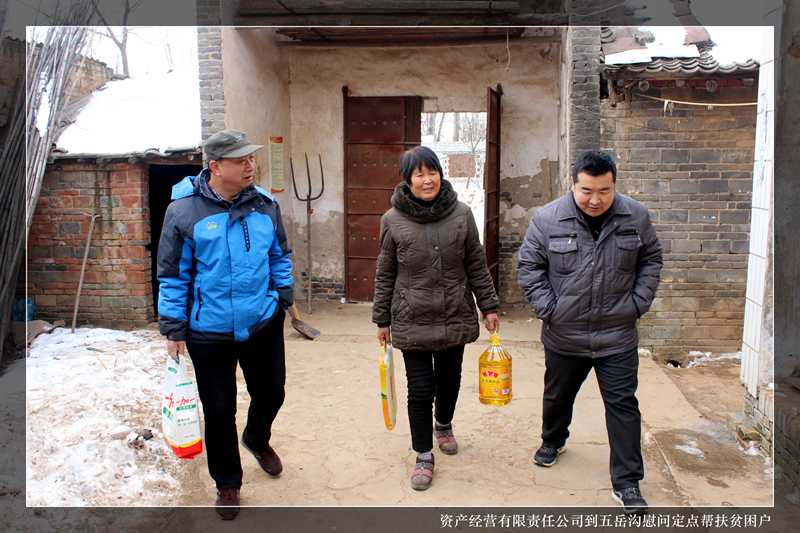 2月1日,带着公司全体员工的温暖和重托,资产经营有限责任公司党总支书记李绍辉、公司办公室员工王丹阳到宜阳县五岳沟村慰问定点帮扶贫困户。