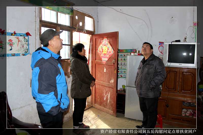 五岳沟村村民马新飞是公司定点帮扶贫困户,李绍辉书记代表公司为其送去油、米、面等慰问品,并与其家人亲切交谈,了解家庭成员健康状况和日常生产等情况。当得知其家房屋多处漏水的情况后,李绍辉书记与其家人一起出主意,商量房屋制漏措施,并鼓励马新飞一家在美高梅娱乐场 驻村第一书记的带领下,坚定信心,战胜困难,早日脱贫致富。