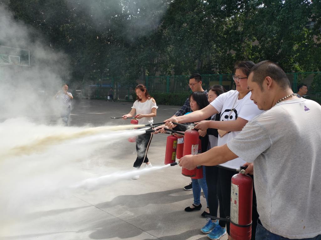 最后,消防科组织在场所有人员进行了灭火器灭火的消防演练。