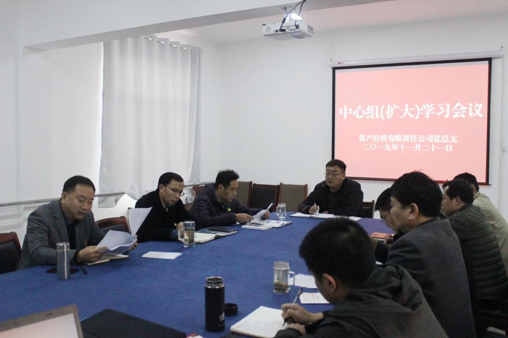 11月21日下午,公司党总支组织中心组扩大学习会议,组织学习党的十九届四中全会精神。公司处级领导干部,各部门负责人,业务骨干参加学习会议。