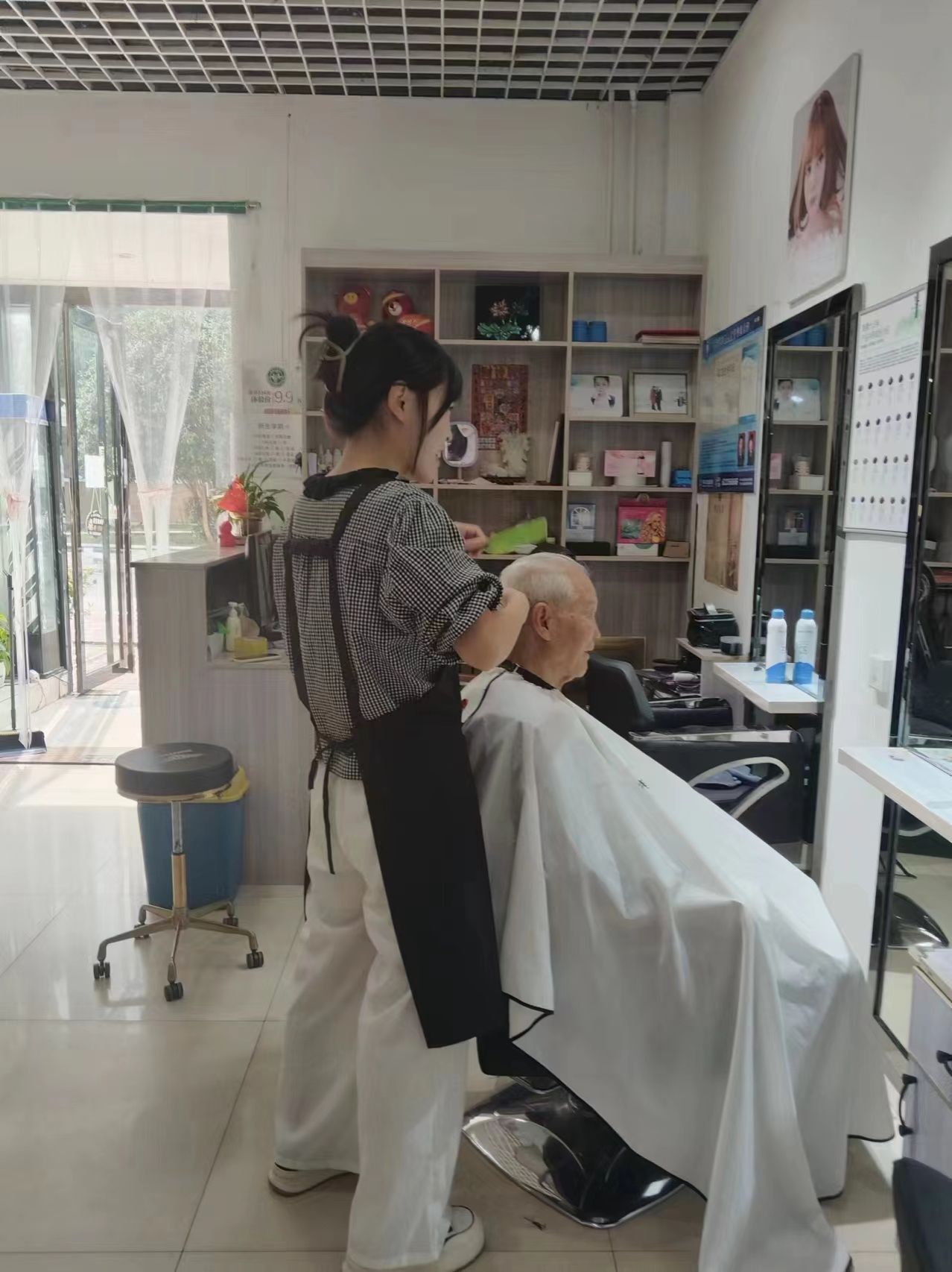 在重阳节到来之际,为了进一步弘扬敬老爱老的传统美德,营造和谐的孝老敬老的浓厚氛围,不断提升美高梅娱乐场 老人们的幸福感与归属感。资产公司联合开元校区校内商户校苑风美发店,于10月11日(周五),在绿园家属区开展了“重阳敬老,义剪传情”社区免费理发活动,主要为绿园家属区70岁以上老人提供免费理发服务。