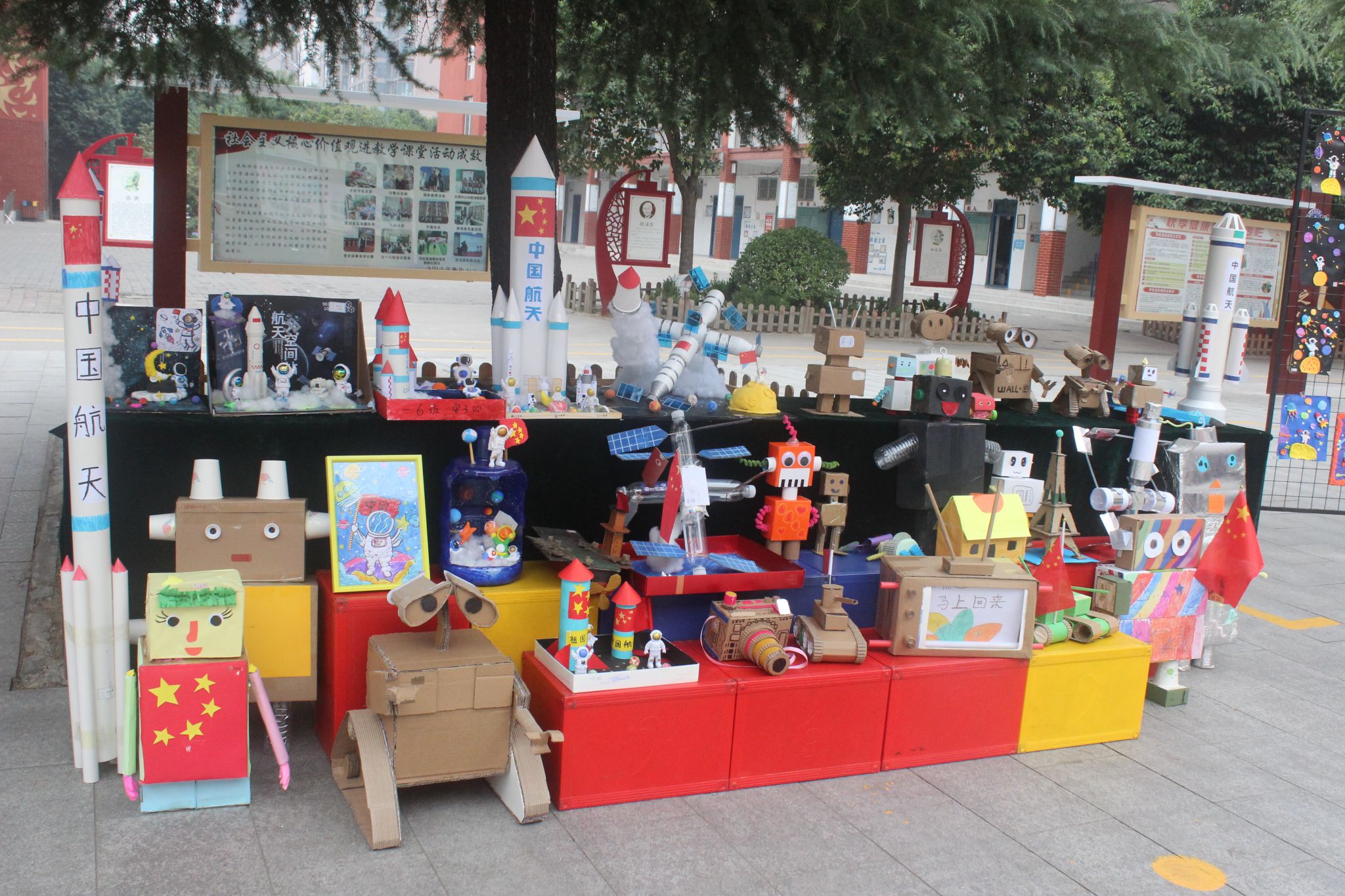 各年级学生们积极参与此次活动,有通过绘画形式创作出的太空航天科普作品,每幅画都充满了童真与生动的想象力,有自己制作的火箭、无人机、机器人等模型,凭借着他们无限的想象力和创造力,做出的模型造型精准严谨,结构完整精巧,这些模型仿佛是他们梦想的具象化,每一个细节都倾注着他们的热情与专注。模型的制造运用了各种材料,从废旧纸盒到塑料零件,从电线到小马达。他们的小手虽然稚嫩,却展现出了惊人的耐心和技巧。这些模型不仅仅是手工制品,更是他们对未来科技的向往和憧憬,是他们心中那个充满无限可能的奇妙世界的小小缩影。