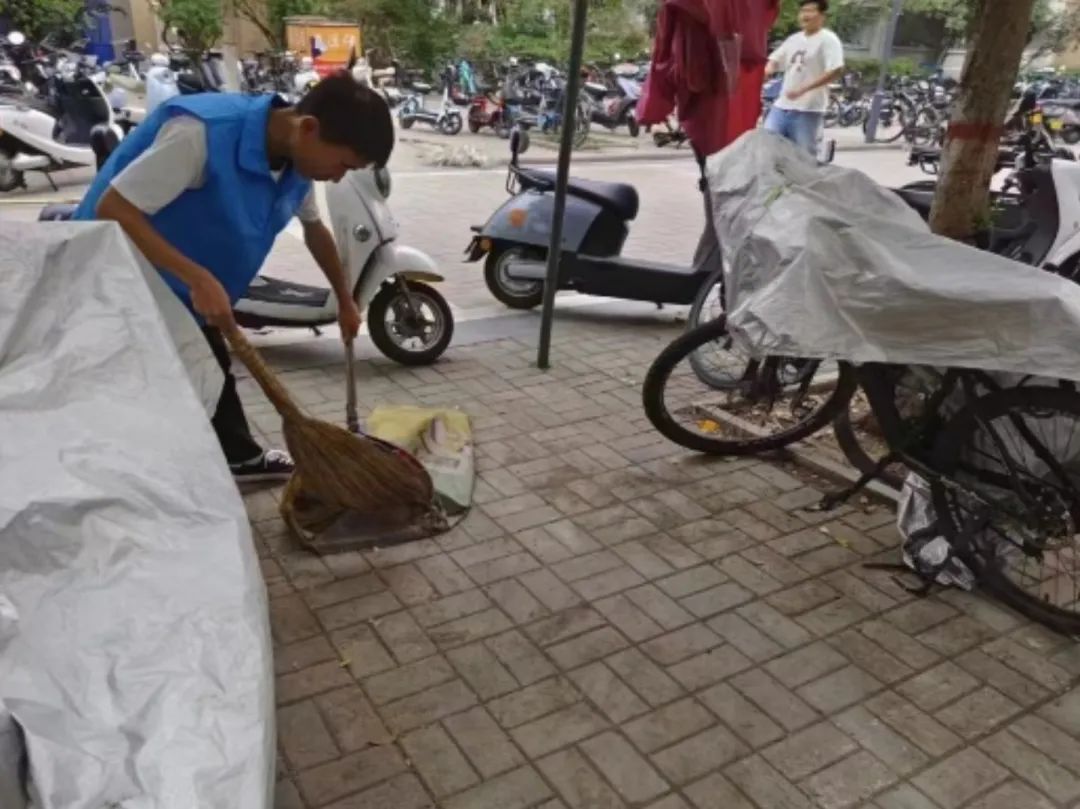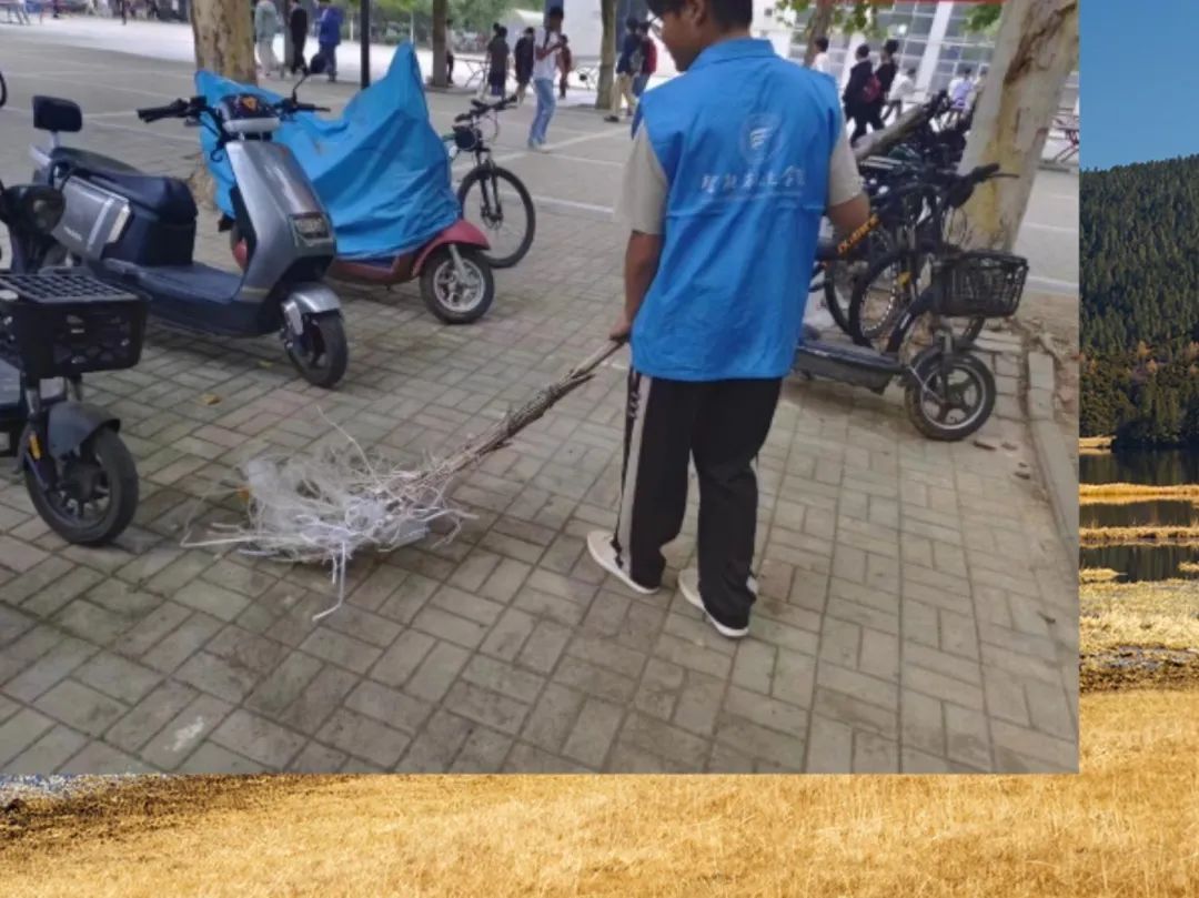 院青协组织32个团支部每天轮流开展“我的第五节课”志愿服务活动,累计130名学生志愿者们对宿舍周边、餐厅、镜月广场等责任区进行垃圾清扫、单车摆放、桌椅规整、劝阻不文明行为等行动。