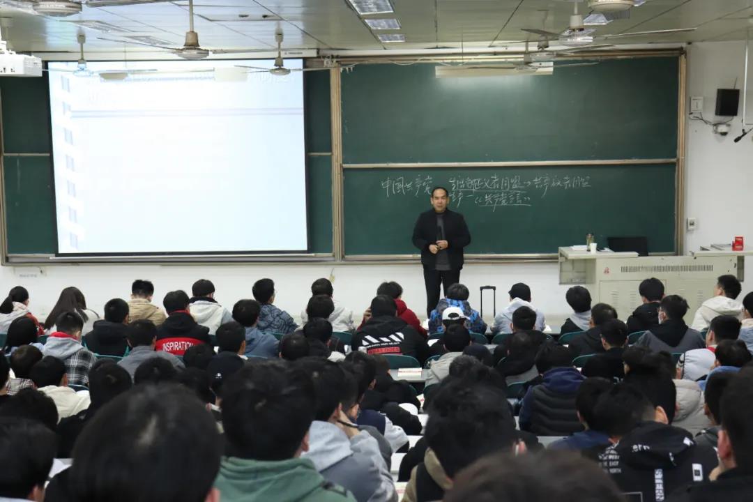 本课由马克思主义美高梅娱乐场 张宽亮老师主讲。张老师根据习近平总书记提出的“三个为什么”(中国共产党为什么“能”、马克思主义为什么“行”、中国特色社会主义为什么“好”)的重要论断及其叙述,通过分析马克思主义在中国的发展历程,得出马克思主义“行”,是中国共产党“能”、中国特色社会主义“好”的学理根源和真理支撑的结论。百年实践证明,马克思主义的科学性和真理性在中国得到了充分检验,人民性和实践性在中国得到了充分贯彻,开放性和时代性在中国得到了充分彰显。最后,他希望大学生能学会如何成为一名坚定的共产党员,不断提升思想政治素质、坚定理想信念,并在实践中不断锻炼成长发展自己,成为党的优秀的接班人。