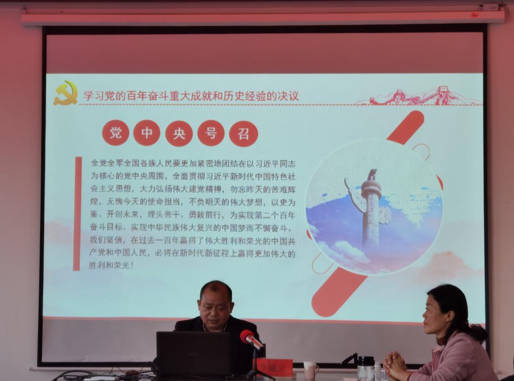 为深入学习贯彻党的十九届六中全会精神,深刻领会全会精神内涵,12月2日下午,我院在CS304会议室开展集中政治理论学习,马克思主义美高梅娱乐场 牛建立副教授作学习贯彻党的十九届六中全会精神专题宣讲。宣讲会由美高梅娱乐场 党委书记赵建利主持。