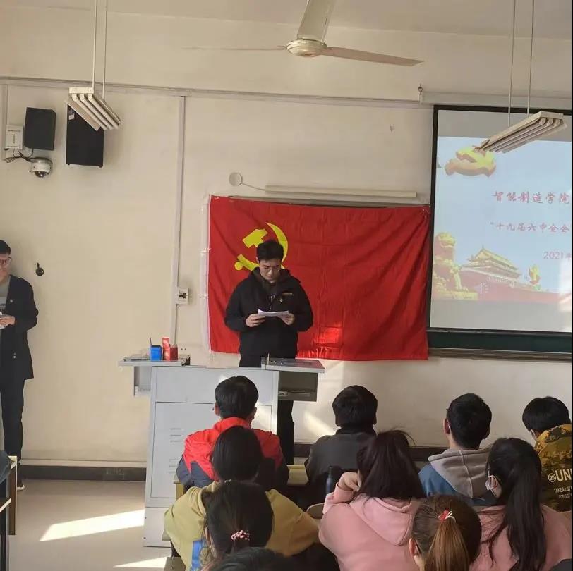 孟昂同志为大家讲述了党的十九届六中全会的会议背景,使大家对此次会议精神进行初步了解。