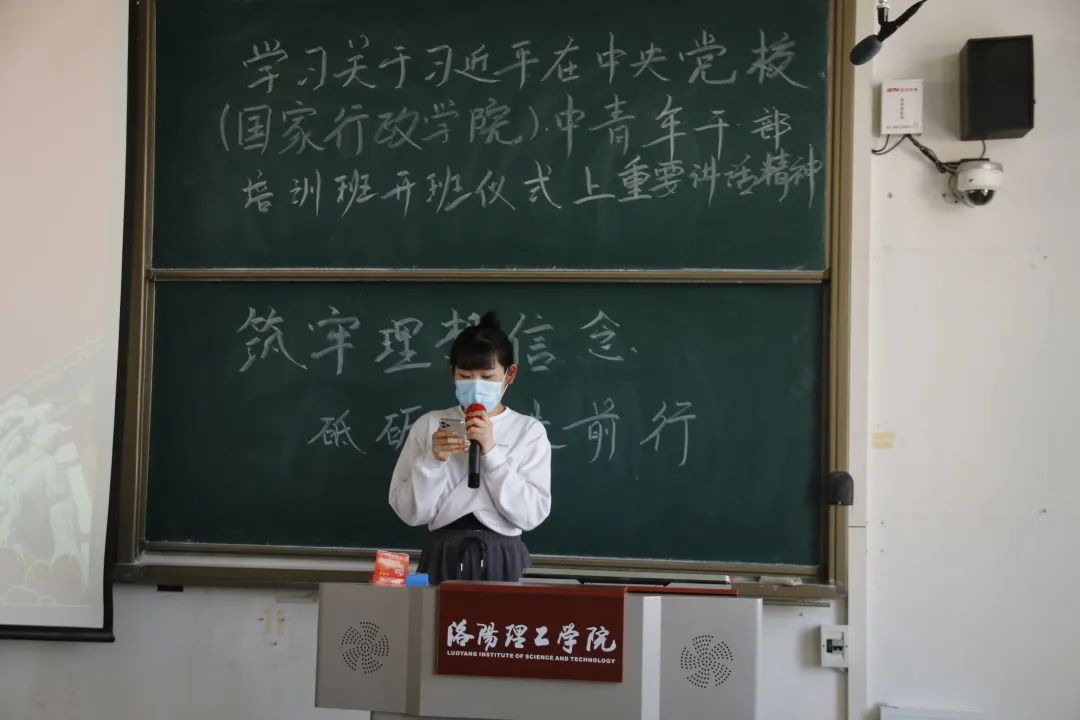 各班团支书和发展对象对本次学习上台发表感想。团支书通过PPT总结该开班式中习近平总书记重要讲话精神。习近平总书记强调,理想信念是立党兴党之基,也是党员干部安身立命之本。年轻干部接好班,最重要的是接好坚持马克思主义信仰、为共产主义远大理想和中国特色社会主义共同理想而奋斗的班。党员干部只有胸怀天下、志存高远,不忘初心使命,把人生理想融入党和人民事业之中,把为人民幸福而奋斗作为自己最大的幸福,才能拥有高尚的、充实的人生。坚定理想信念,必先知之而后信之,信之而后行之。坚定理想信念不是一阵子而是一辈子的事,要常修常炼、常悟常进。