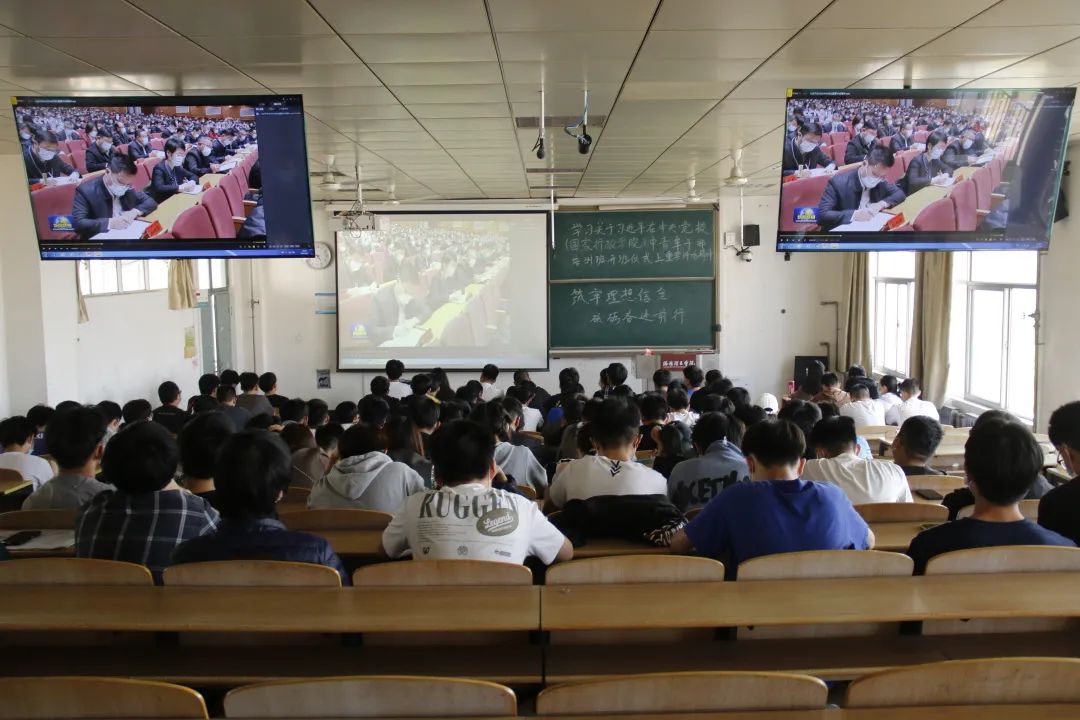 同学们在班级团支书的带领下观看习近平总书记在2022年春季学期中央党校(国家行政美高梅娱乐场