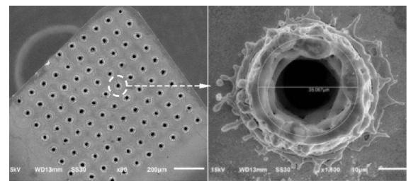 1. 仿生微织构软涂层刀具的制备工艺。根据现代仿生学和摩擦学研究领域提出的生物非光滑表面织构的概念,将不同形状特征的表面微织构通过不同的加工方法制备在刀具的前刀面或后刀面,研究证实,这种结构具有改善润滑状态和抗磨减摩的作用,能有效降低材料表面的磨损。基于表面微织构抗磨减摩和改善表面接触状态的特点,实验室将表面微织构技术应用到高速钢、合金钢钻头和硬质合金车刀的前刀面刀-屑接触区,利用有限元法对表面微织构刀具的钻削和车削过程进行模拟仿真,研究表面微坑对其切削加工性能的影响,此外,实验室通过激光加工技术在刀具表面成功进行表面微织构,并与软涂层技术相结合。