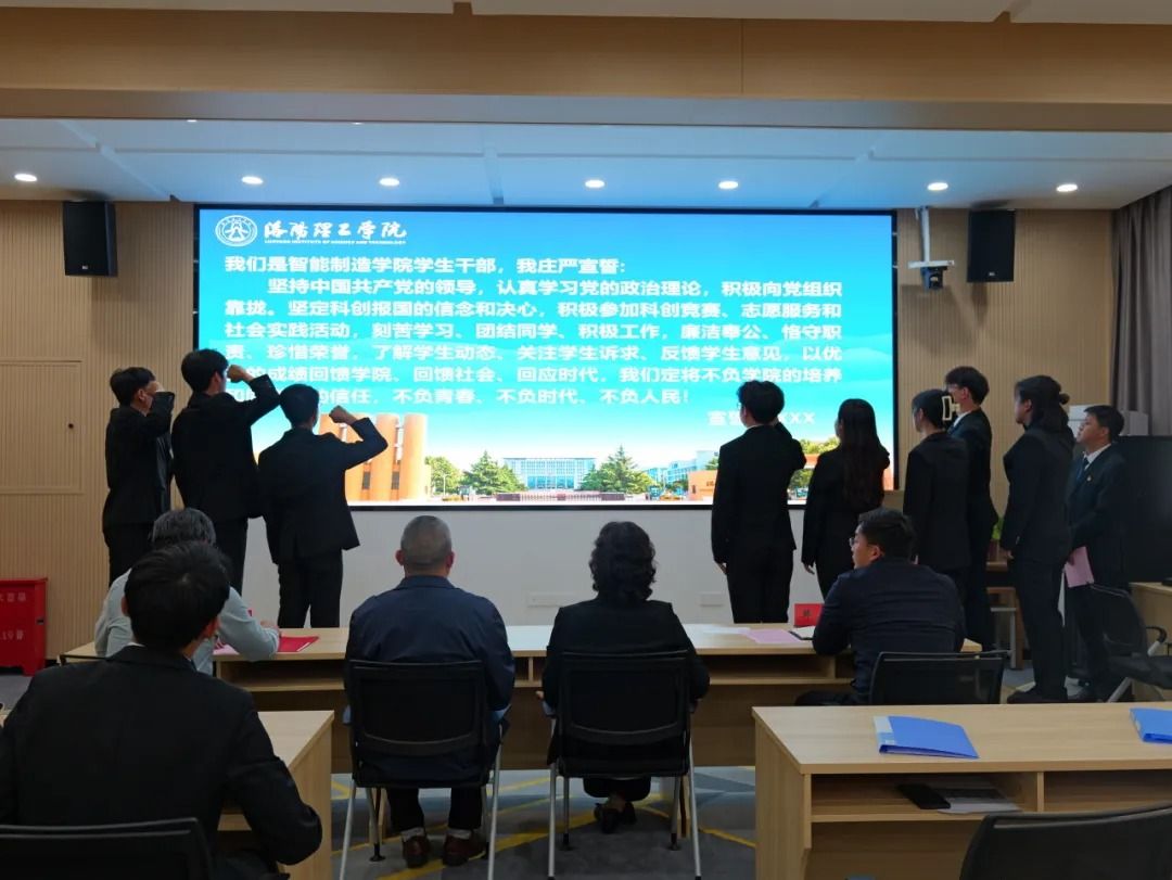 曲振锋宣读了《智能制造美高梅娱乐场 学生委员会人员名单》,朱德荣随后宣布了《第四届团委学生会主席团成员名单》。