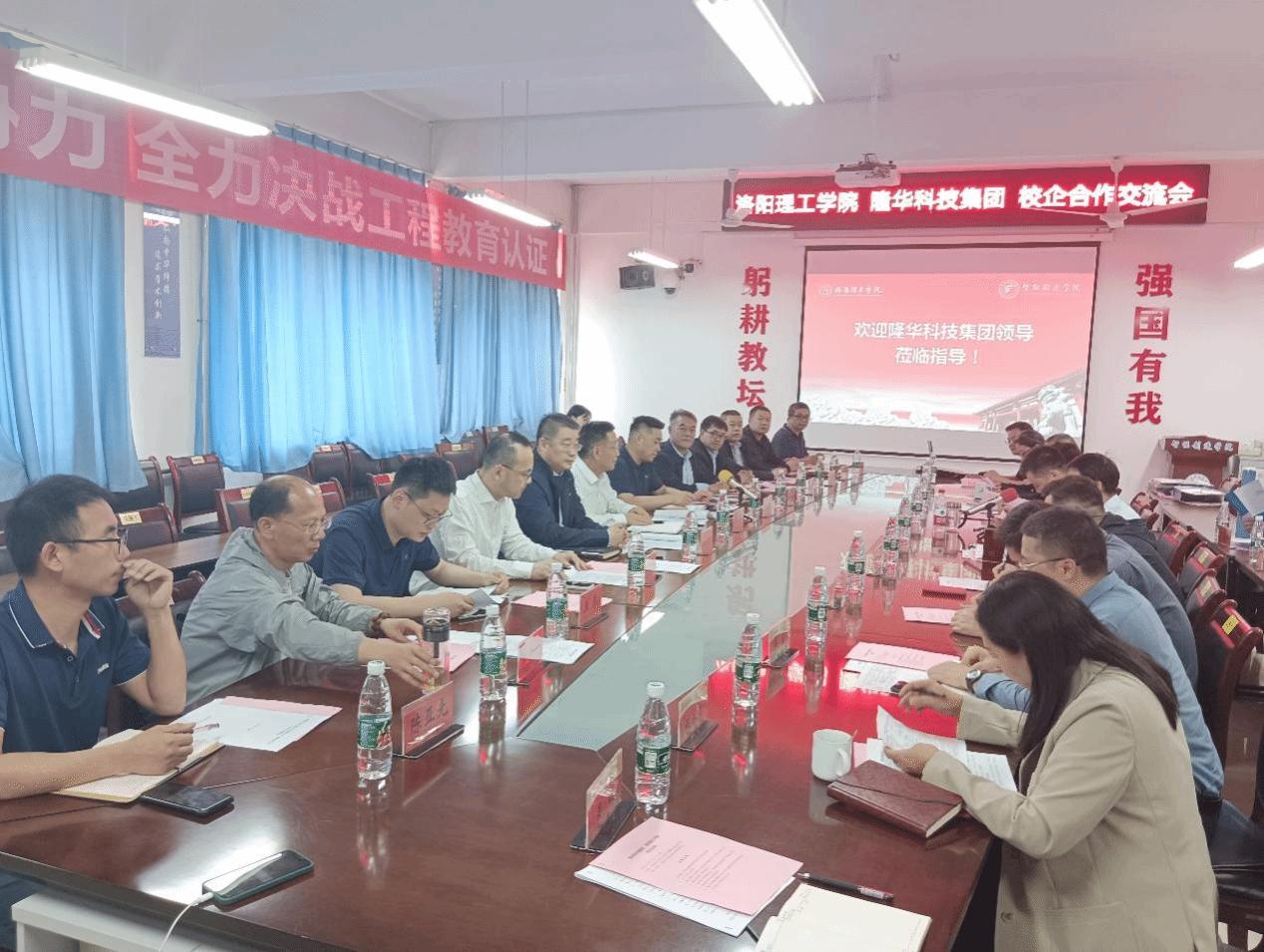 4月22日下午,隆华科技集团董事长、党委书记李占明,副董事长、党委副书记李占强,集团总经理刘玉峰一行12人到美高梅娱乐场 合作交流。