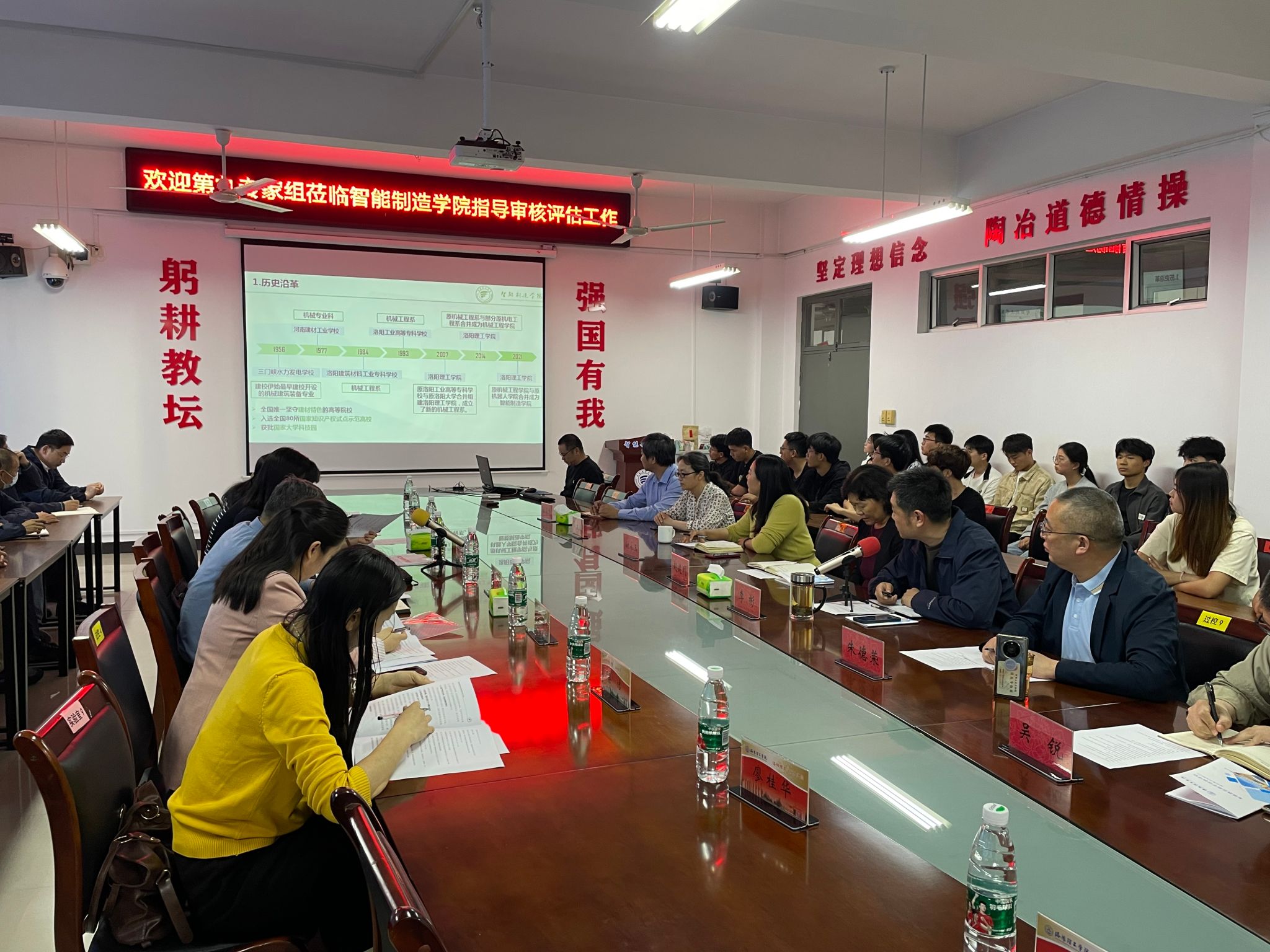 5月6日下午,美高梅娱乐场 第九专家组一行9人在组长王新武副校长带领下到智能制造美高梅娱乐场 进行审核评估校内诊断性评估。