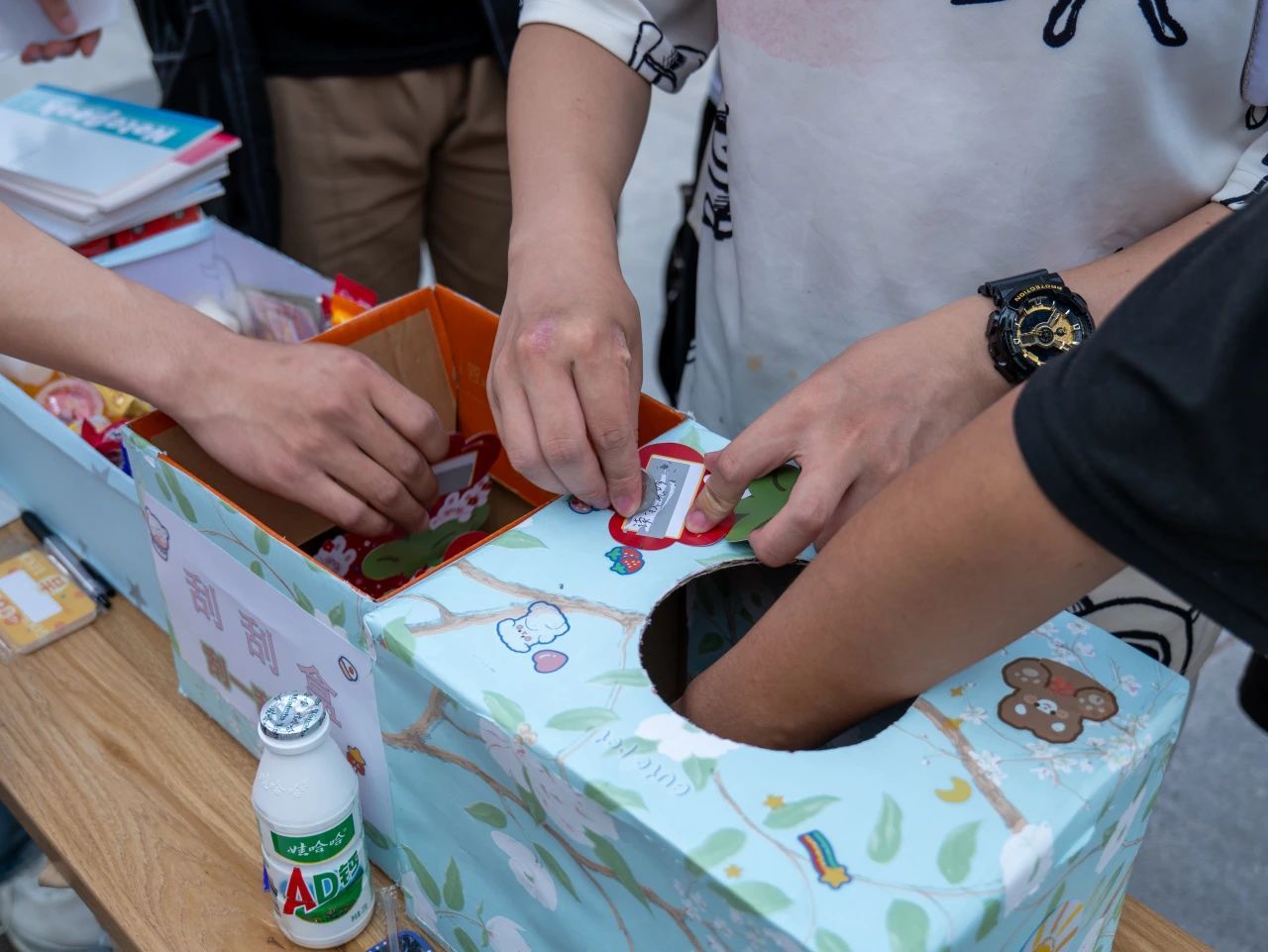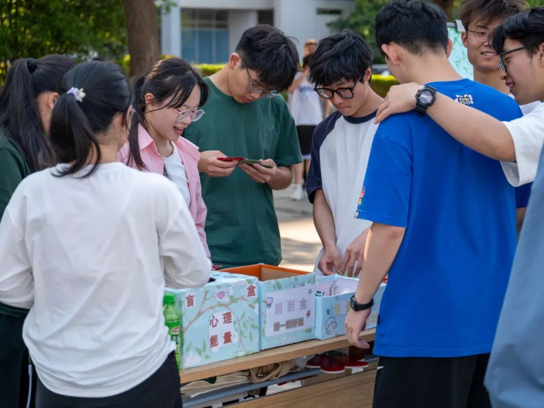 活动分为三个精心设计的步骤。 首先,参与者们从一个装满刮刮盒的展台中随机抽取一张纸条,用硬币刮开图层,根据指示完成相应的任务。这些任务虽然简单,却充满了趣味性和挑战性。 接着,参与者们从一个装满心理能量的盲盒随机抽取一张贴纸,每张贴纸上都印有鼓舞人心的话语,象征着心理能量的传递。最后,参与者们来到能量补给站,领取一份小礼物,这份礼物不仅是对他们积极参与活动的奖励,也是对他们身体能量的一种补充。更有各美高梅娱乐场 领导,老师莅临、体验、参观。