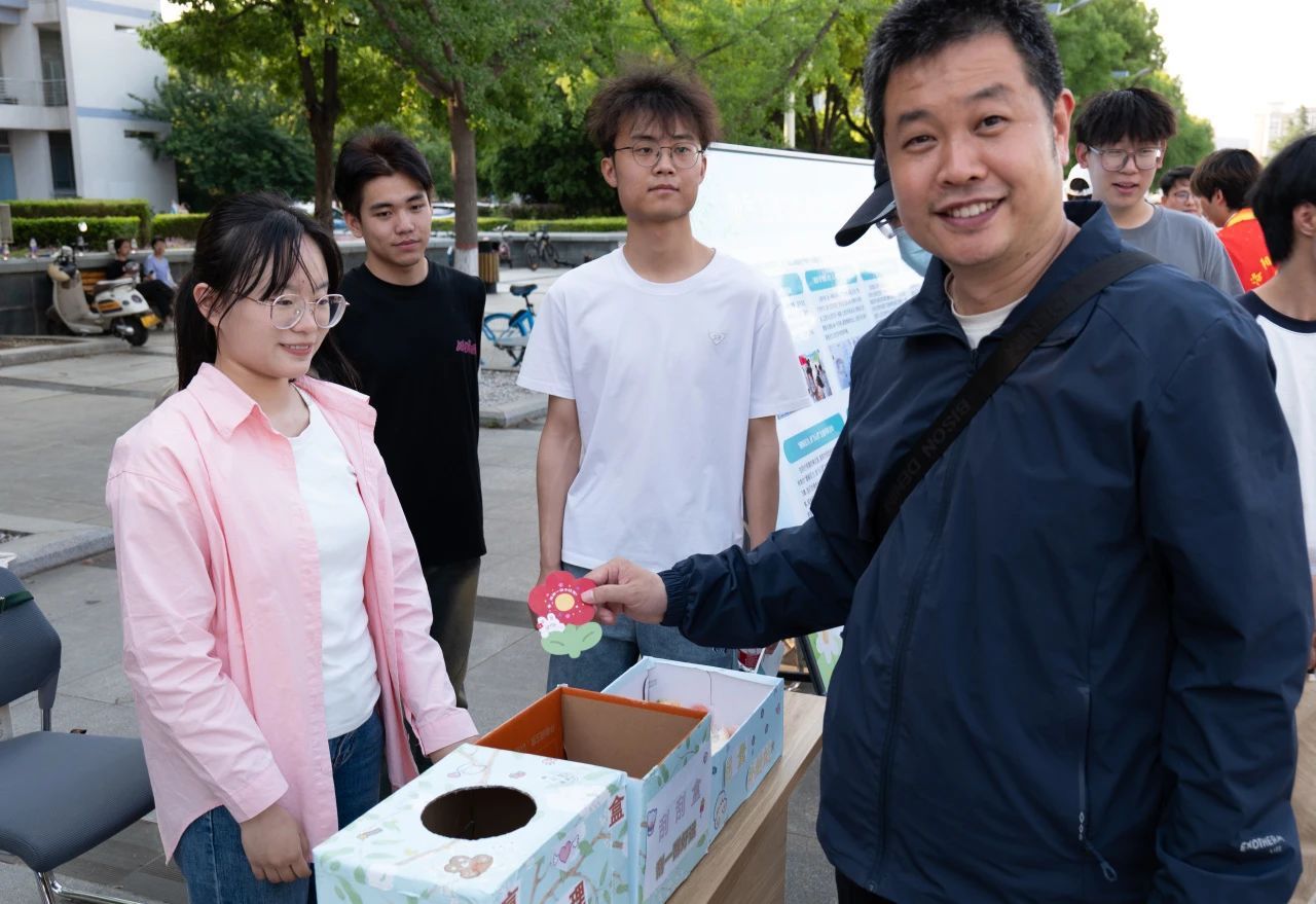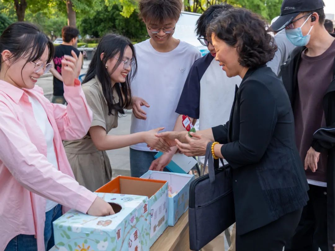 活动现场,校领导也莅临参观,带上美高梅娱乐场 学生自制的小红花贴纸,并给予现场同学们亲切真挚的问候。