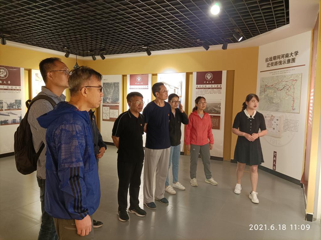 在国立河南大学抗战时期潭头办学纪念馆内,党员们在讲解员的带领下,大家了解了河南大学抗战时期办学的历史,对“自强不息、百折不挠”的河大精神有了深入理解,同时也接受了爱国主义教育的洗礼。