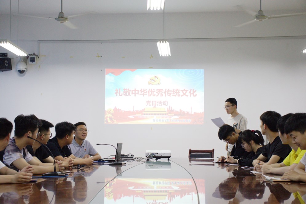 2021年5月20日下午两点,智能制造美高梅娱乐场 学生第七党支部全体党员28名在CS304开展了以“礼敬中华优秀传统文化”为主题的党日活动。此次党日活动由组织委员韩锋同志主持,他首先介绍了活动目的及活动流程:一是开展党史故事会分享;二是学生党员畅所欲言谈感想;三是重温入党誓词。