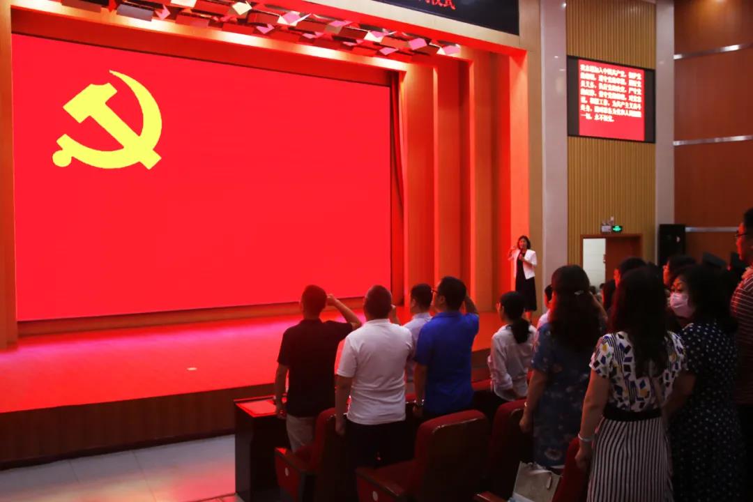 面向鲜红的中国共产党党旗,美高梅娱乐场 党委书记赵建利举起右拳,带领全体师生党员重温入党誓词,铿锵有力的宣誓声响彻大厅,更加坚定了我们党员“跟党走、听党话”的决心,更加牢固了“为共产主义奋斗终身”的信念。