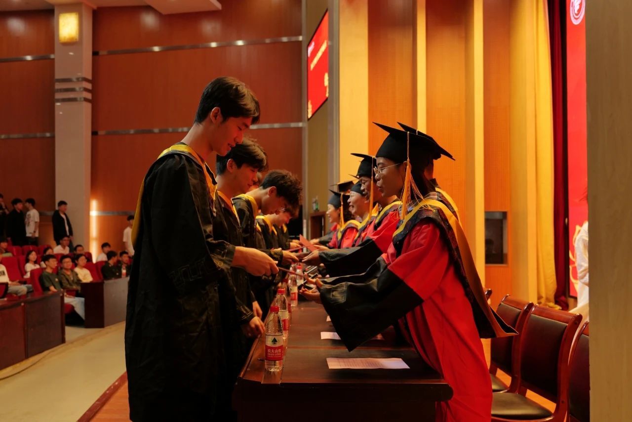 美高梅娱乐场 党委书记赵建利、院长李彬、副院长兼党委副书记朱德荣、副院长姚永玉、副处级辅导员曲振峰出席典礼,叶海潮、姚春霞、宋伟志、段雷、岳遂录、周辉、李洲稷、全体毕业班辅导员老师以及2024届全体本/专科毕业生参加典礼,典礼由副院长兼党委副书记朱德荣主持。