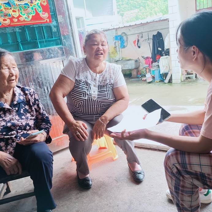 吴云云同学为村民们讲述了在党的旗帜下自强不息、砥砺奋进的优秀女性毛绍成的故事,鼓励村民们要多追寻红色故事,用红色精神引领走向乡村振兴之路。
