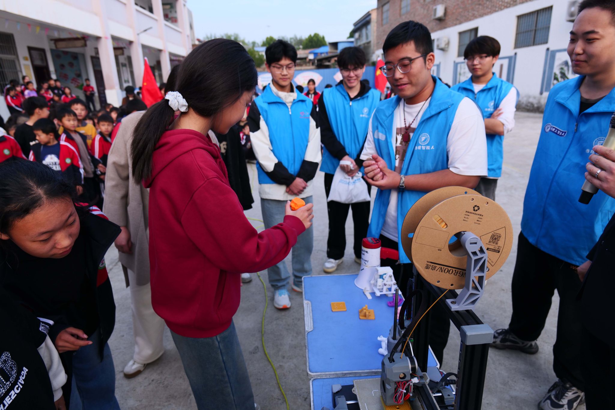 大学生科学与技术协会吕宏博同学为同学们讲解了3D打印机的构造及工作原理,智能控制俱乐部、3D协会等为小朋友赠送了打印模型作品。