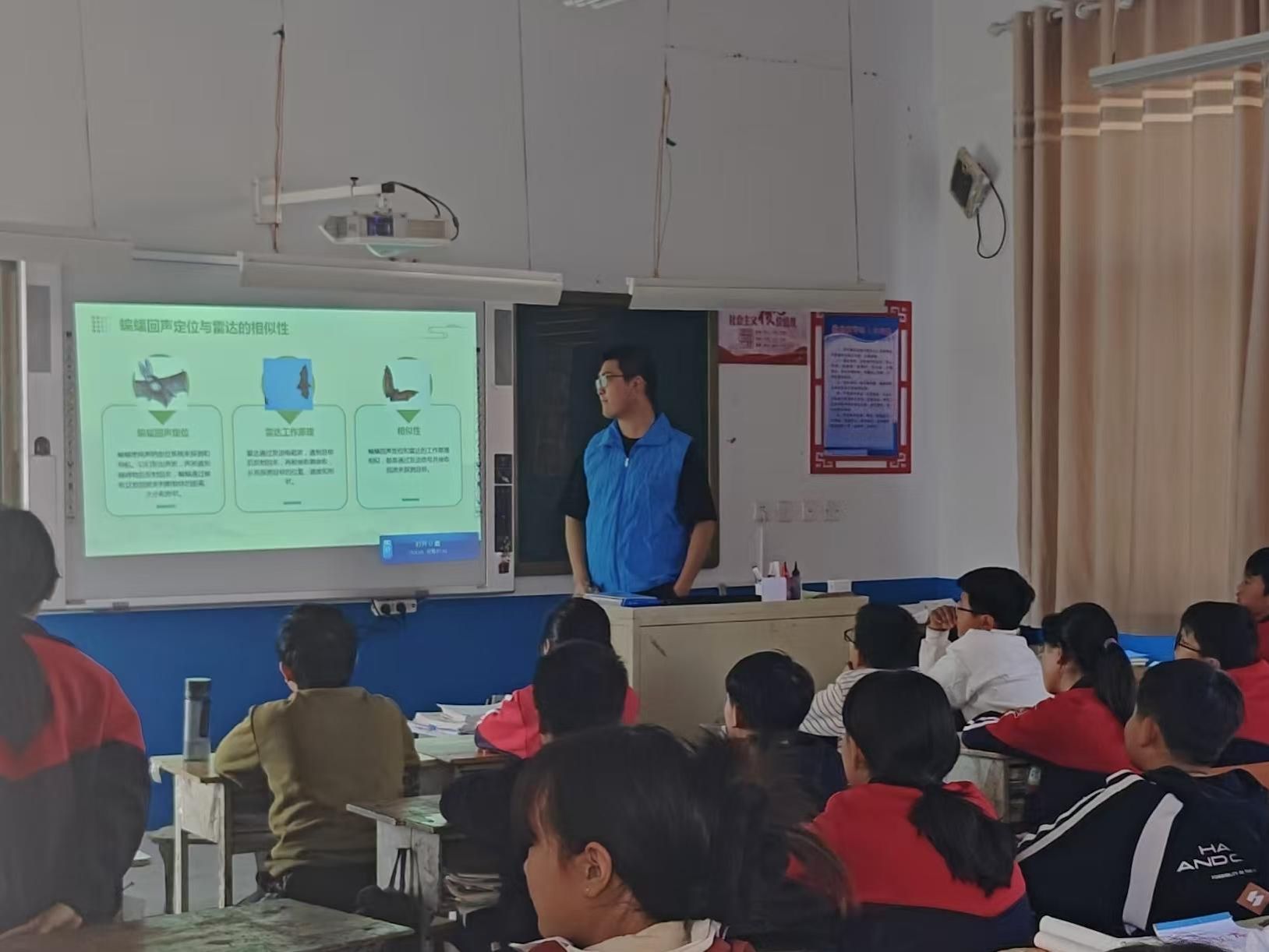 匠芯智能蓝科普宣讲团、星火燎原理论宣讲团、智能戎光志愿服务队董开拓、王帅博、王鹏飞、李英豪、张高权、沈昊宇、杨淑华、宋子琳、孙昆明、刘博文等10位同学分别围绕蝙蝠与雷达、航空航天、长征精神与国防教育主题进行讲解,共计18场覆盖360余人。