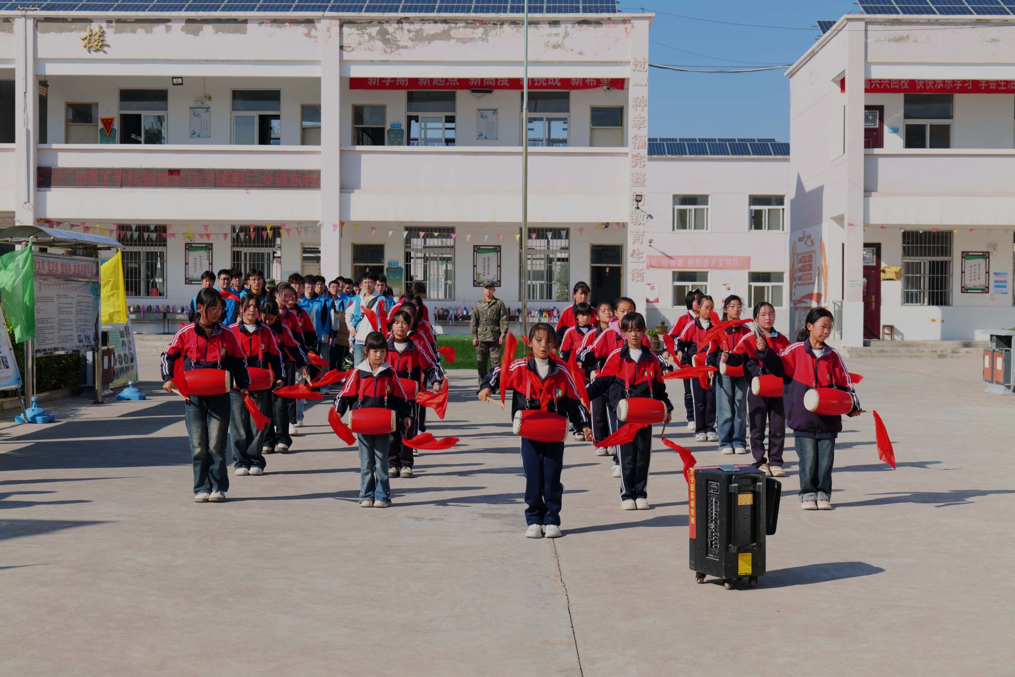 三乡镇东村小学腰鼓队通过精彩的腰鼓表演,对美高梅娱乐场 师生的到来表达了热烈的欢迎。