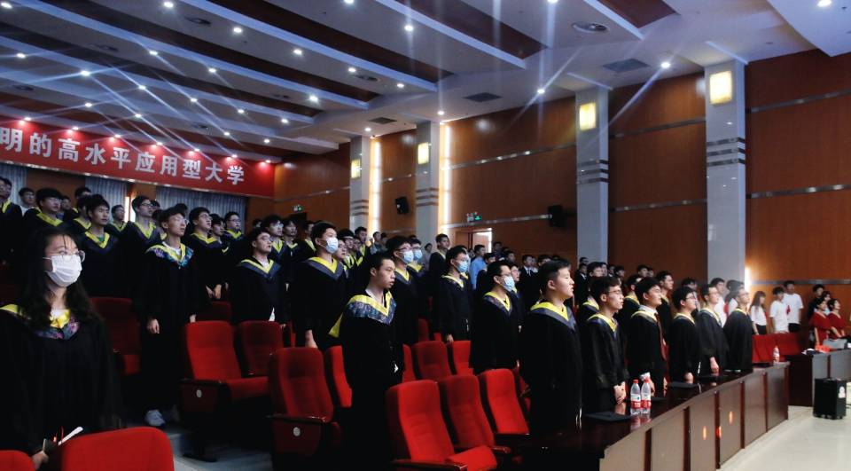 毕业典礼在庄严肃穆的《义勇军进行曲》中拉开帷幕。