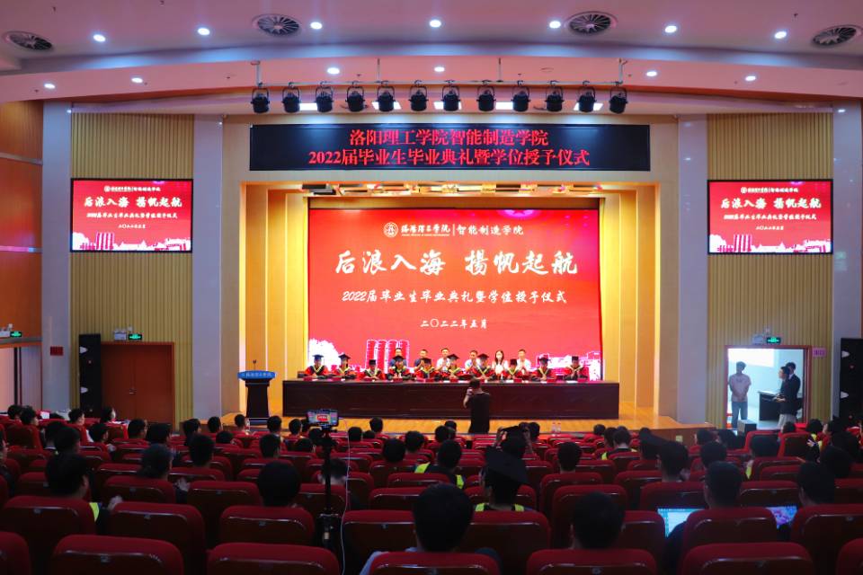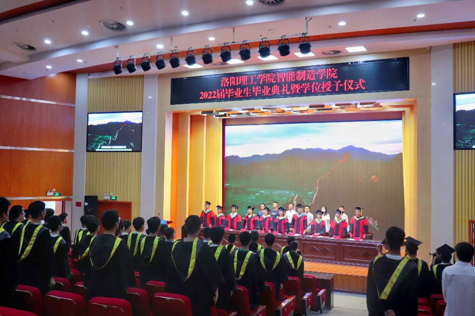 5月30日下午,智能制造美高梅娱乐场 2022届毕业生毕业典礼暨学位授予仪式在王城校区图书信息中心学术报告厅举行,美高梅娱乐场 党委书记赵建利、院长李彬、党委副书记王艳敏,副院长卢文涛、副院长姚永玉出席典礼,系主任、全体辅导员和2022届毕业生代表参加典礼。毕业典礼由美高梅娱乐场 党委副书记王艳敏主持。