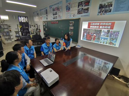 为将全会精神落实在实处,支部组织开展“为疫情防控出份力“实践活动,李洲稷同志为大家讲解新冠疫情的相关知识,分析疫情防控的重要性,并部署实践活动的人员分工。
