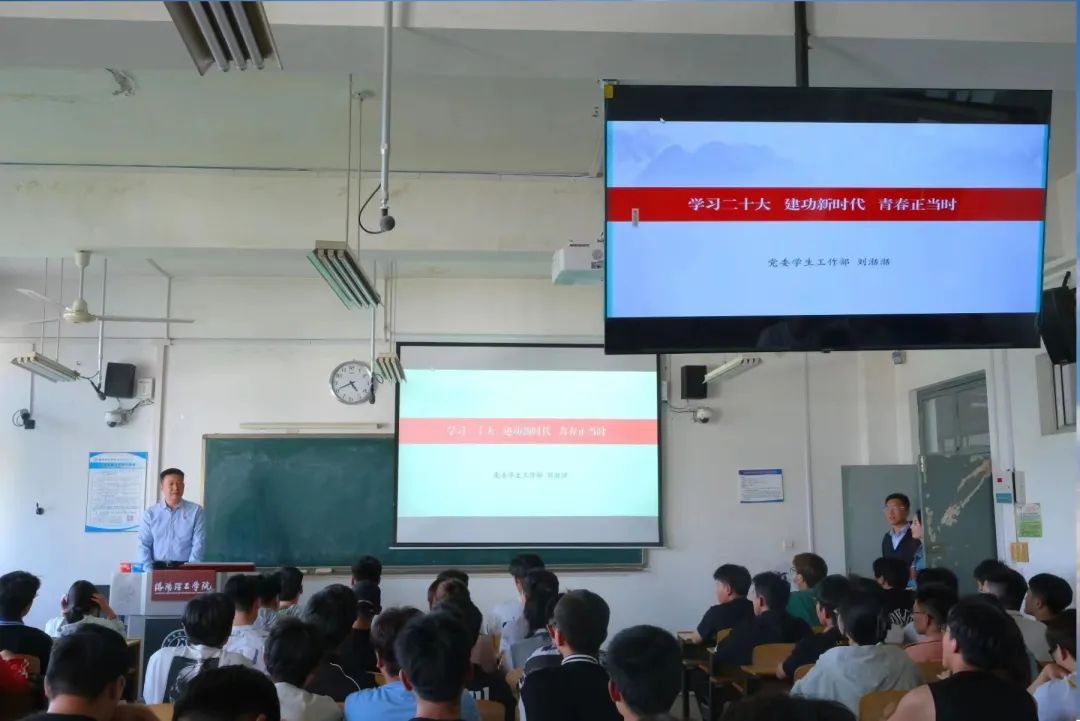 为深入学习宣传贯彻党的二十大精神,加强师生思想政治引领。美高梅娱乐场 邀请美高梅娱乐场 党委学工部部长、学生处处长刘湉湉以《学习党的二十大 建功新时代 青春正当时》为主题,于5月12日下午4点30分,在cs506教室向美高梅娱乐场 师生进行宣讲。院学工办主任张晨骏老师,辅导员韩坤老师、赵天贺老师、赵静雯老师以及第17期发展对象、22级各班团支书、第三届团委学生会全体学生干部参加此次宣讲。