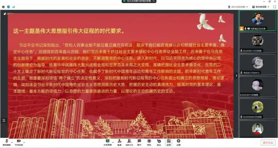 为了学习团的十九大精神及习近平总书记同团中央新一届领导班子重要讲话精神,7月28日下午三点,智能制造美高梅娱乐场 团委学生会开展“奋进复兴征程,书写青春新篇”线上主题活动。美高梅娱乐场 团委学生会全体学生干部参加会议,会议由校学生会主席王亚鹏主持。