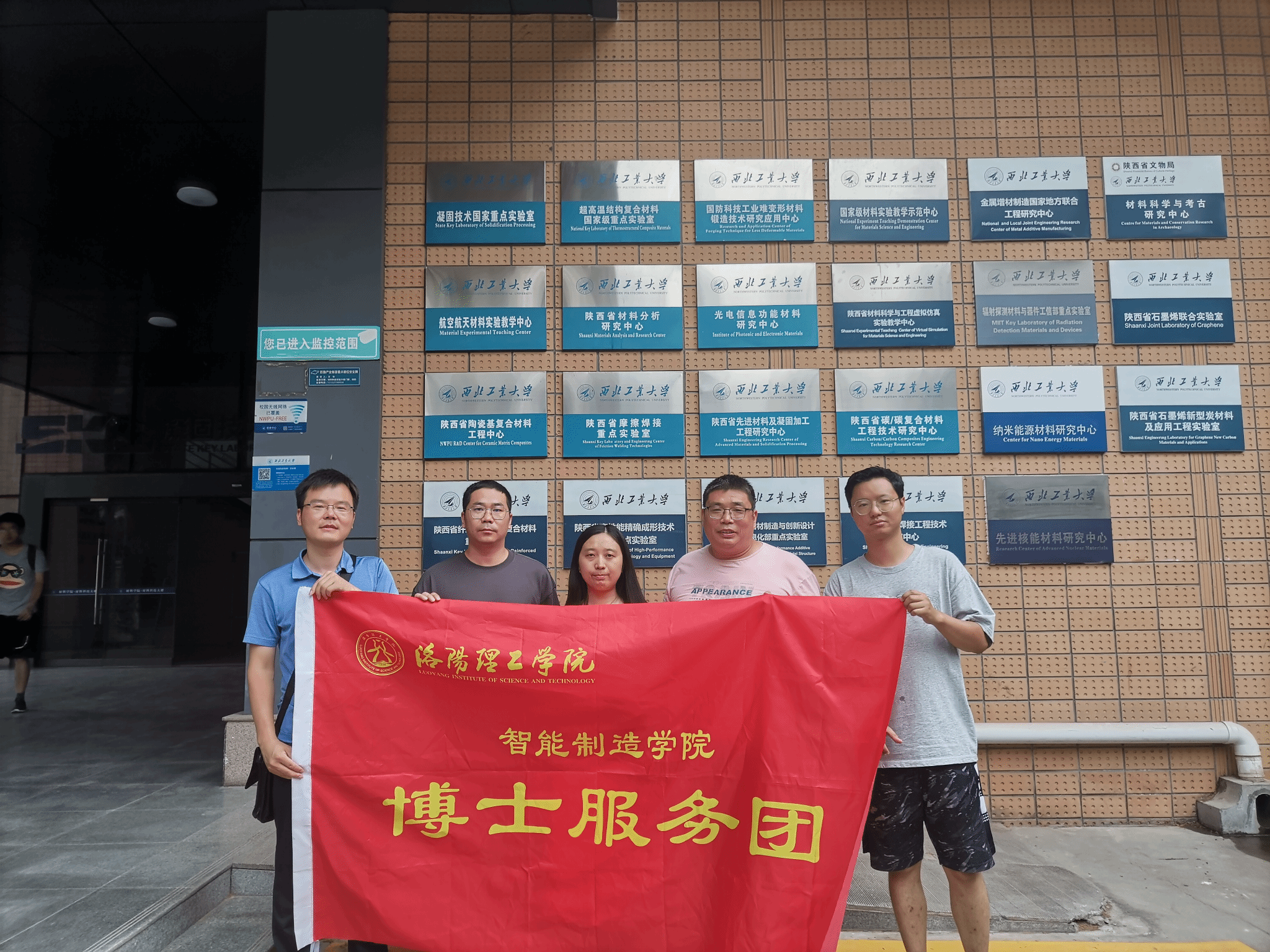 7月27日最后一站,博士团来到了位于西安的西北工业大学友谊校区参观学习。参观了材料美高梅娱乐场 材料科技大楼。材料美高梅娱乐场 拥有凝固技术国家重点实验室。主要研究方向为现代凝固理论、材料精确成形和航空航天先进材料。以航空航天为代表的国防重大材料技术需求为主要服务对象。通过此次西北工业大学的参观学习,了解到了西工大在航空、航天、航海相关科学理论方面不断形成具有重大原始创新、高影响力的理论成果;也在国防科学技术方面实现了众多创新;形成了在相关领域具有重要影响的科学研究基地、人才培养基地、技术创新、学术交流基地和国家公共研究平台。感受到了浓厚的研究氛围和为祖国服务的精神,深受鼓舞。