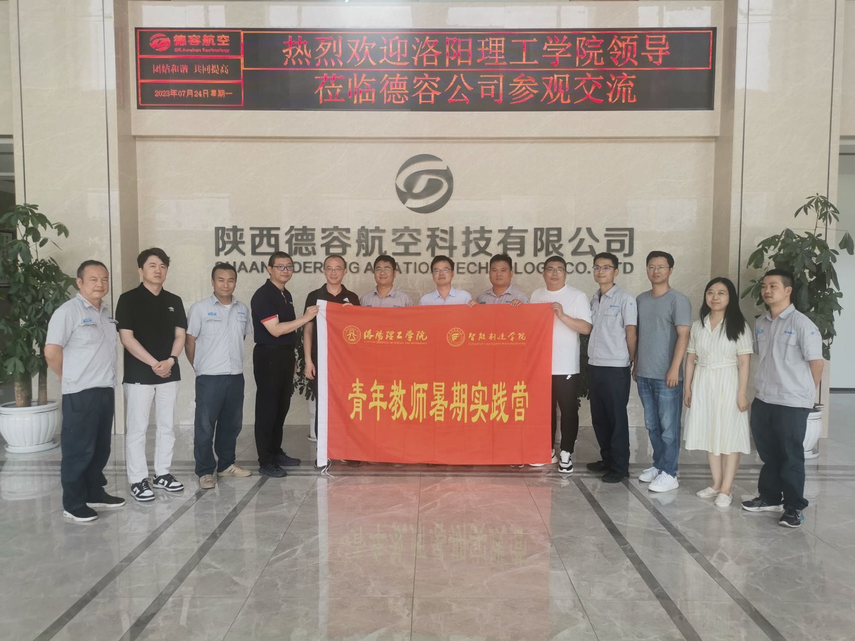 7月24日第一站,博士服务团来到了陕西省汉中市德容航空科技有限公司。在副总工程师张钢平的带领下,详细参观了德容航空的生产车间。了解了航空工件的生产流程,生产车床,以及一些特殊的工艺处理方法。随后,观看了德容航空公司发展历程以及公司运营现状的视频。德容航空的多位工程师与博士团就目前公司生产过程中遇到的难题和瓶颈问题展开了热烈探讨。博士团就上述问题提出了研究方向,希望展开后续的深入合作。双方就合作事宜签署了合同,在产学研合作,协同育人等方面达成共识。