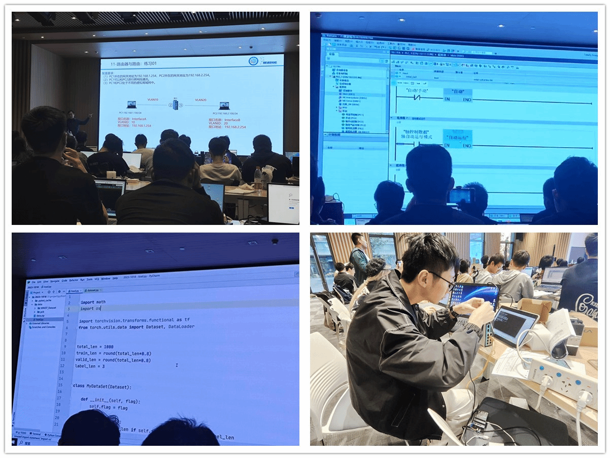 本次培训班共有来自上海海事大学、南京理工大学、苏州大学、南京工业大学、西安理工大学等36所高校共64名学生组成,讲师由犀浦培训中心,西门子公司、摩莎科技公司等专业人员组成,内容涵盖工业APP概述,生产系统分析与优化实训(主要关于图形识别算法),生产系统集成与调试(智能仓储工作站集成调试实训),工业网络组网和网络安全,数字孪生与仿真实训。通过培训,学生一方面开阔了视野,另一个方面也与其他高校进行了相关专业知识的交流,获得很多学习经验和实践技能,基本掌握了相关生产系统的操作、编程、调试、维护,等工作,以及会通过TECNOMATIX软件进行数字生产线的仿真和测试。